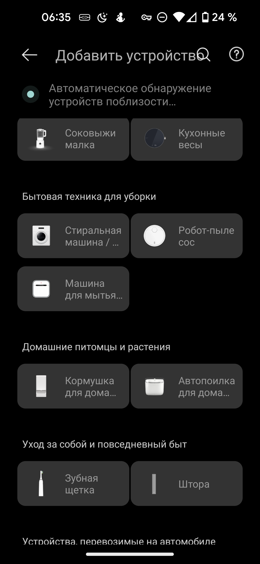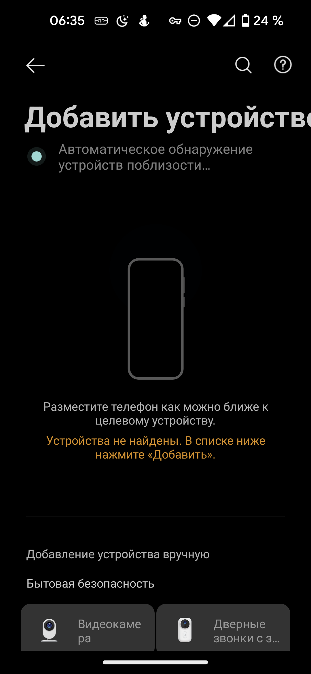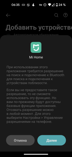 Даже если разрешить доступ к информации о местоположении и поиску BLE-устройств, пылесос не обнаруживается автоматически: следует воспользоваться ссылкой «добавить устройство вручную».