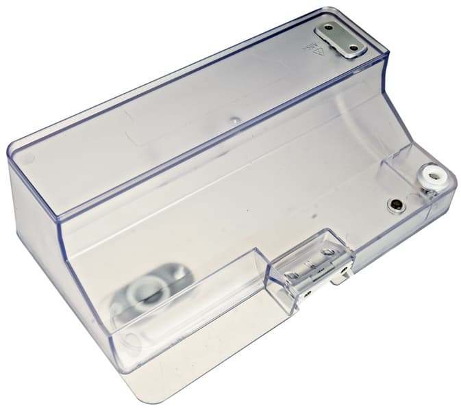 Емкость для воды занимает всю верхнюю плоскость контейнера. Наполняют ее через заливную горловину, закрытую резиновой пробкой.