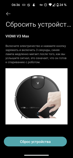 Mi Home поддерживает множество разнообразных приборов IoT. Нам следует выбрать папку «Робот-пылесос», а в ней найти наш Viomi V3 Max. После этого приложение расскажет, как активировать на роботе режим сопряжения: для этого следует зажать обе кнопки на верхней панели прибора и через 3-5 секунд дождаться голосового сообщения.
