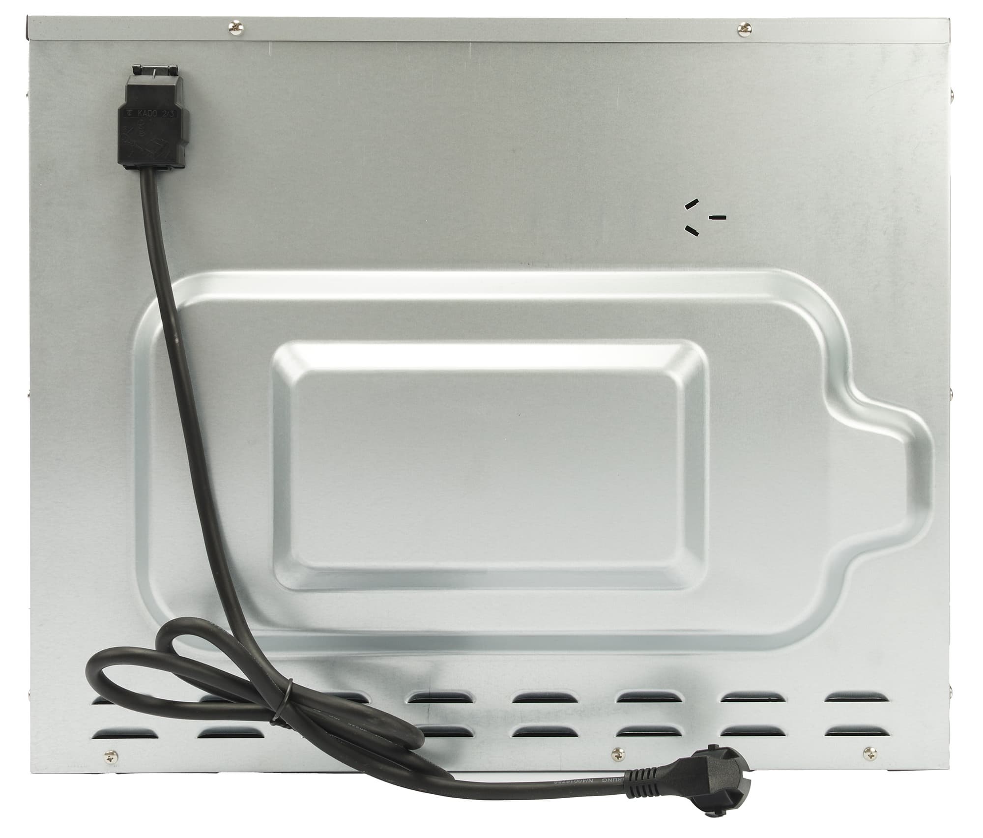 На задней стенке внизу есть небольшие прорези для вентиляции, вверху — место крепления кабеля с уже установленной вилкой.