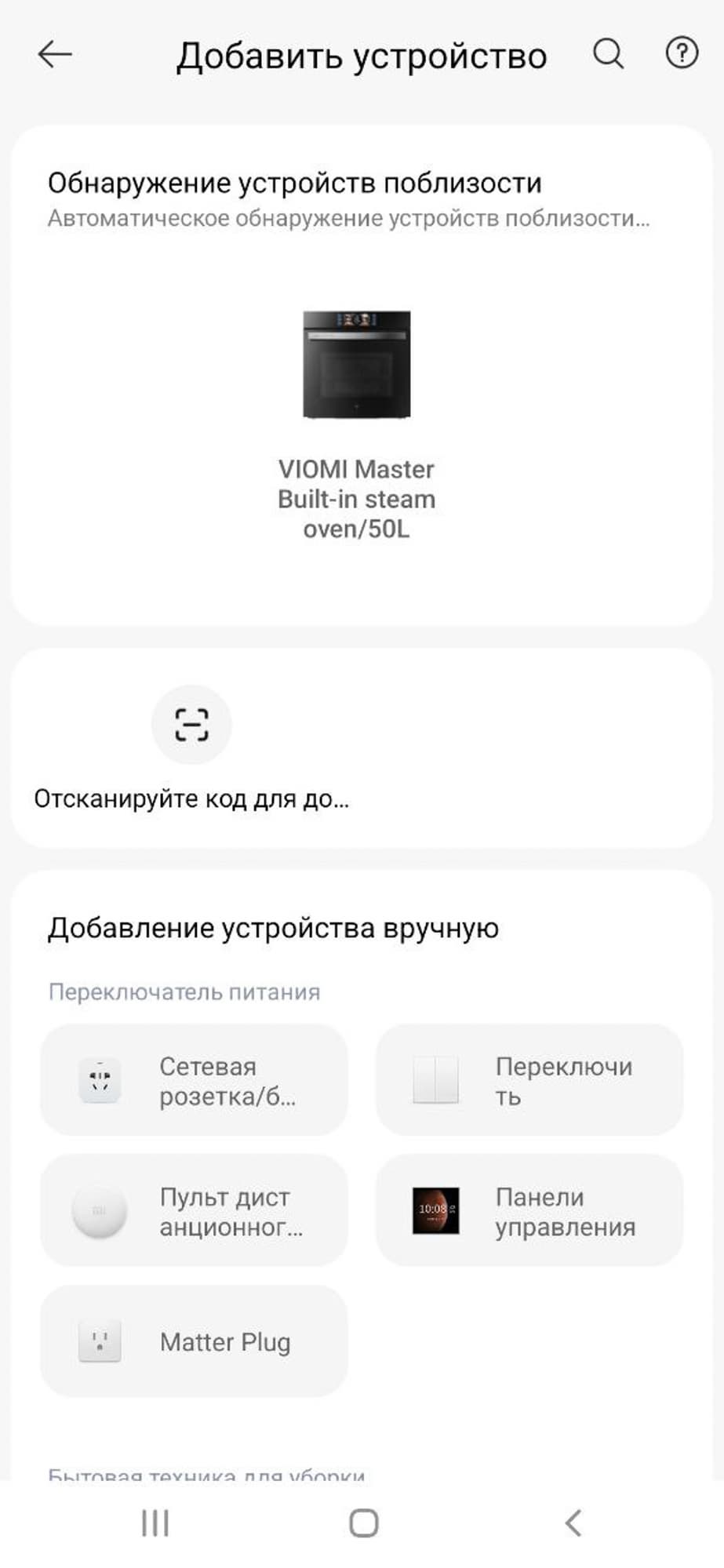 Для активации Wi-Fi на духовке нужно одновременно нажать и удерживать кнопки «+» и «−», пока не замигает соответствующий значок. После этого в основном меню приложения в правом верхнем углу нажимаем на «+» и смартфон автоматически начинает искать устройство.