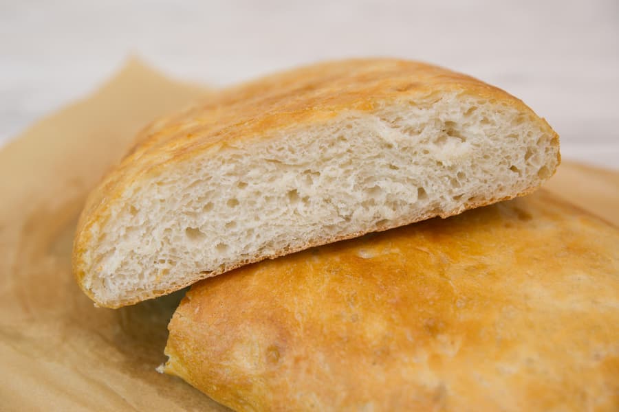 Затем снова перевернули хлеб, чтобы верх стал еще более поджаристым. На это ушло минуты 3.