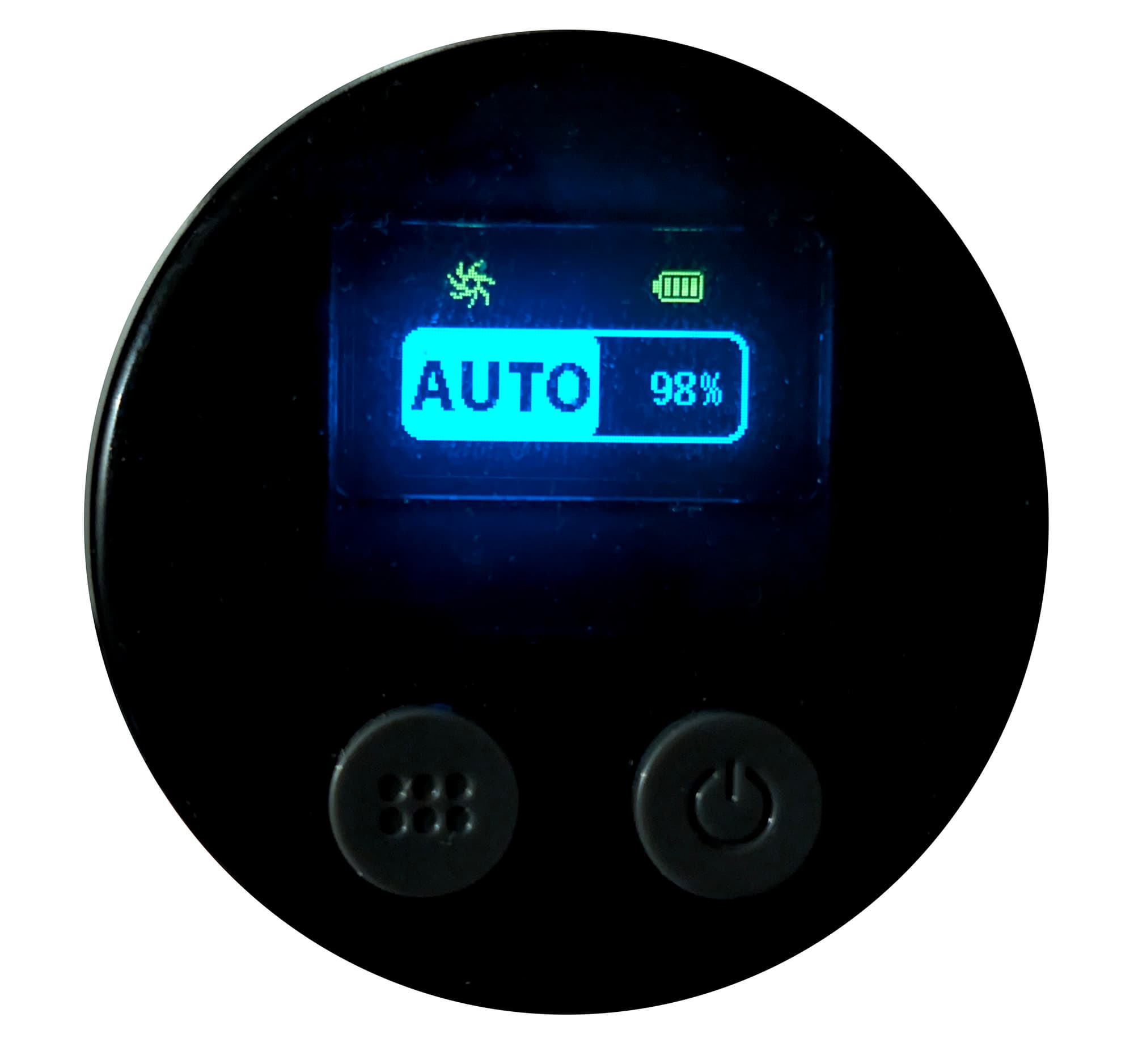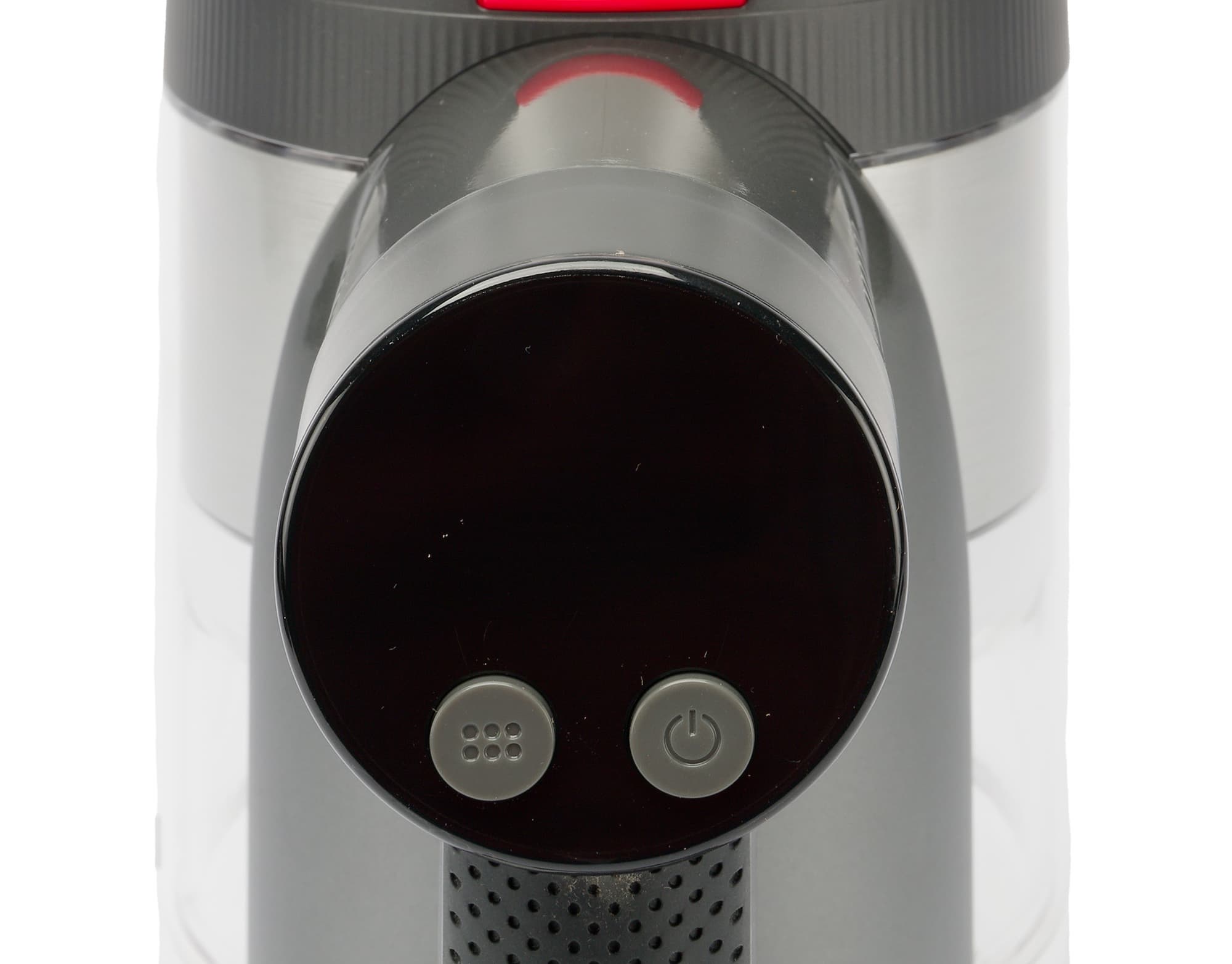Над кнопками располагается небольшой (чуть менее дюйма по диагонали) цветной OLED-дисплей. На нем отображаются уровень заряда аккумулятора в процентах и выбранный режим работы. В верхней строке предусмотрены индикаторы неисправностей: проблем с аккумулятором, электрощеткой, воздушным трактом и фильтром.