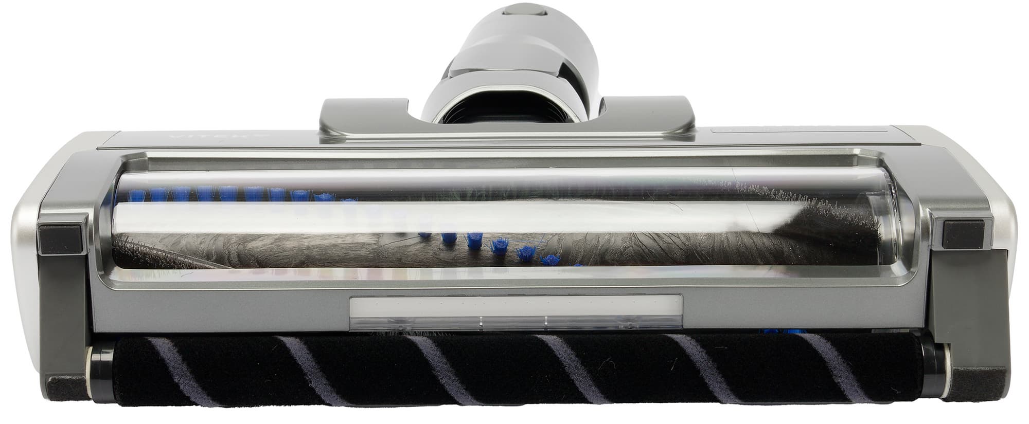 Насадка легко скользит по полу благодаря двум обрезиненным роликам в задней части. В центре конструкции имеются два дополнительных ролика поменьше, а нишу ротора с трех сторон окружают неподвижные щеточные элементы, улучшающие прилегание к поверхности.
