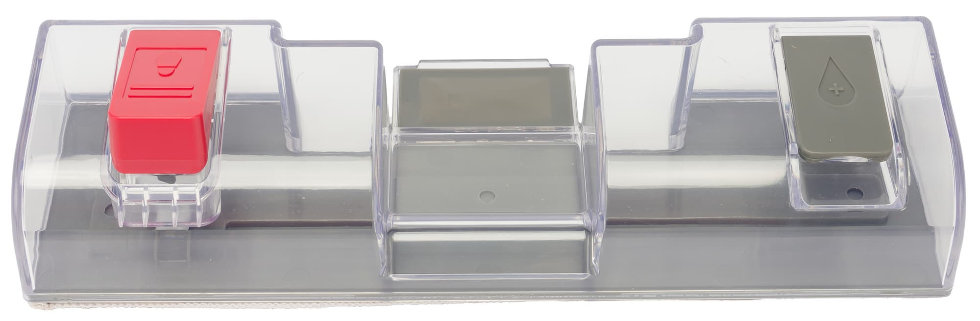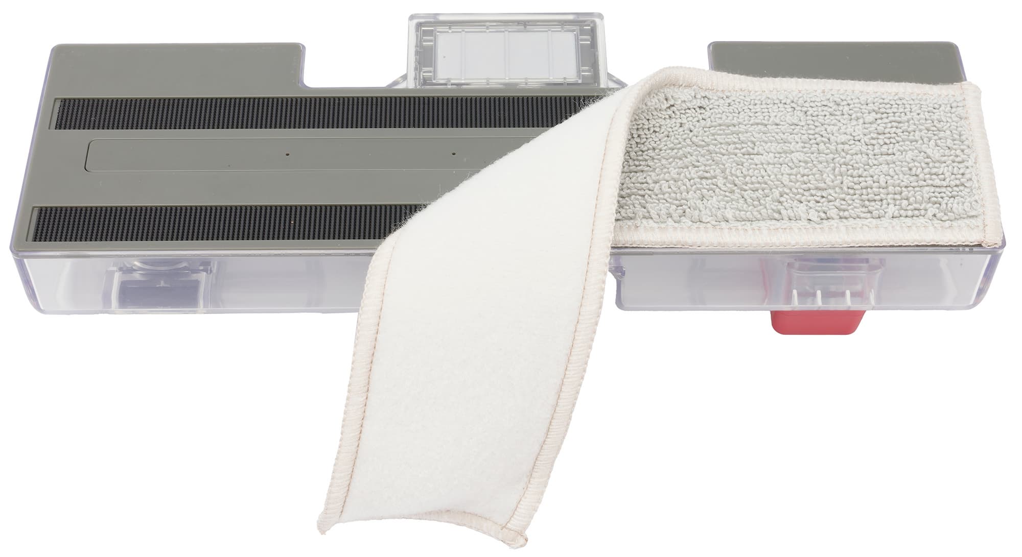 К нижней стороне модуля на липучках-велкро крепится тканевая салфетка, увлажняемая через микроотверстия в корпусе.