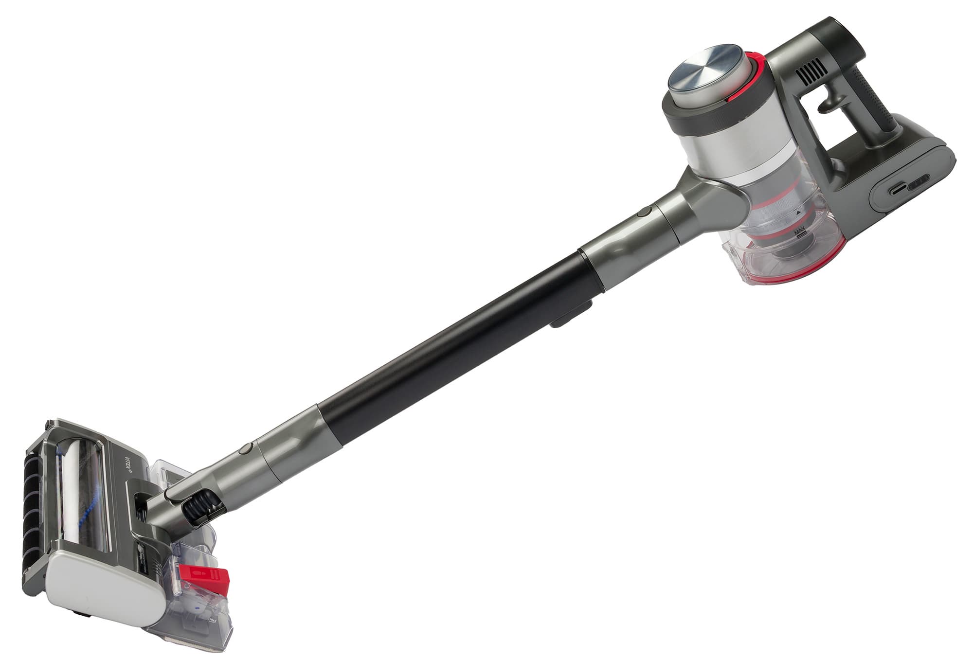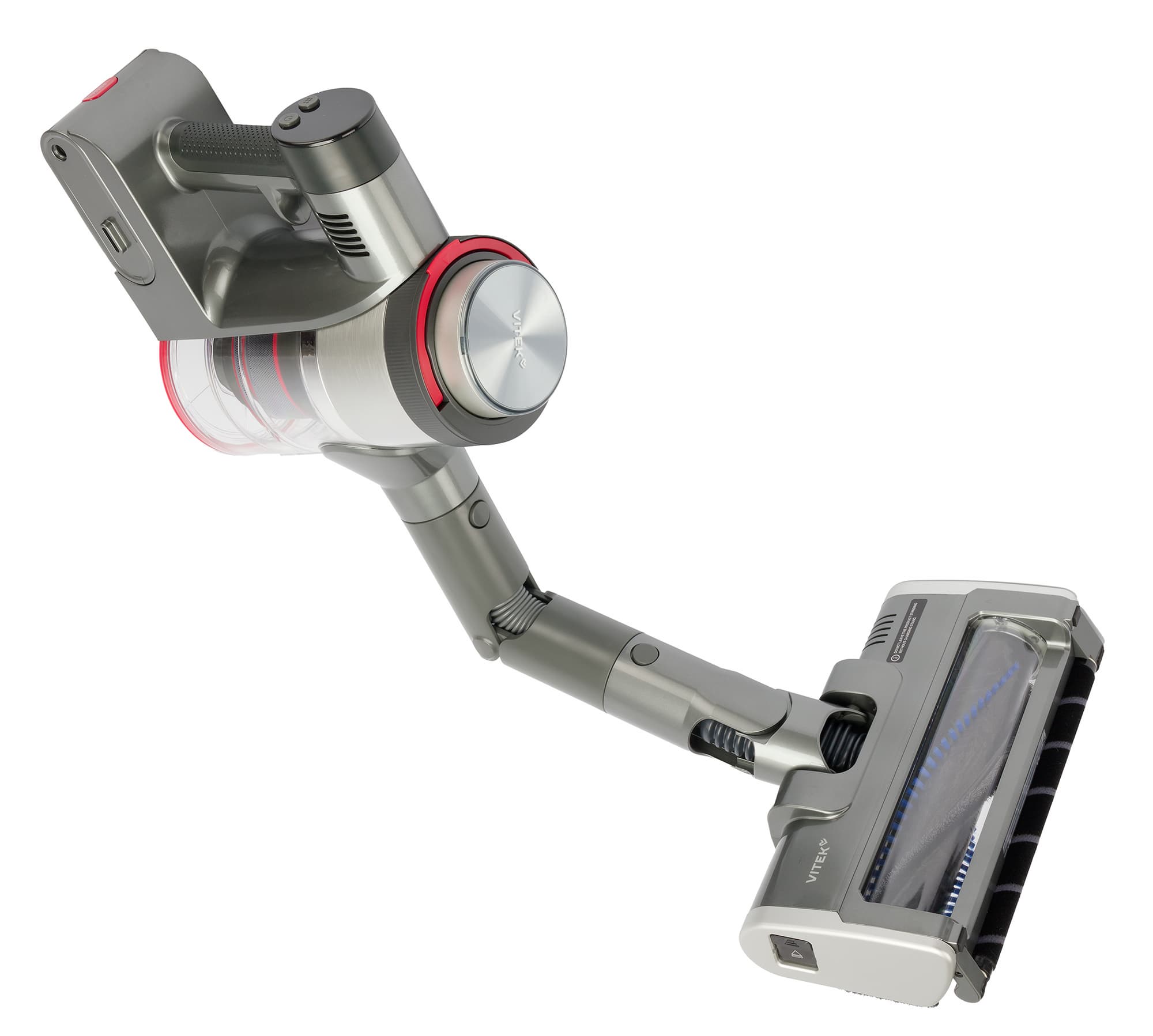 В конфигурации для уборки пола Vitek VT-CLSAQUA Rapid эффективен и удобен. Основной вес устройства приходится на ролики половой щетки, гибкий шарнир насадки обеспечивает хорошую подвижность и помогает при уборке труднодоступных мест.
