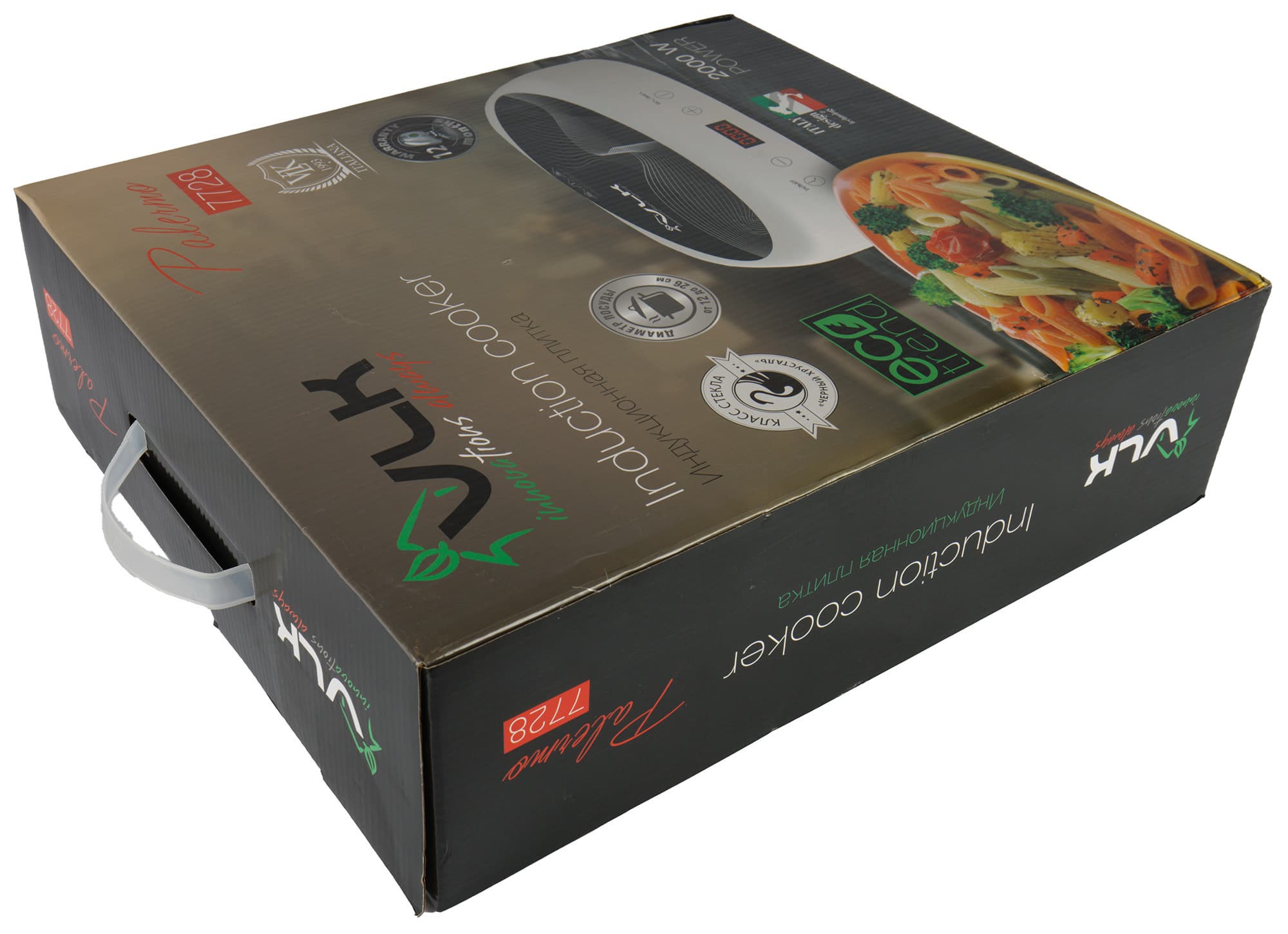 У нас на тестировании настольная одноконфорочная индукционная плитка Palermo 7728 «итальянского» бренда VLK. Правда, в разделе «Контакты» на официальном сайте указан адрес в Мытищах и электронная почта info@endever.su, но не будем придираться ;)