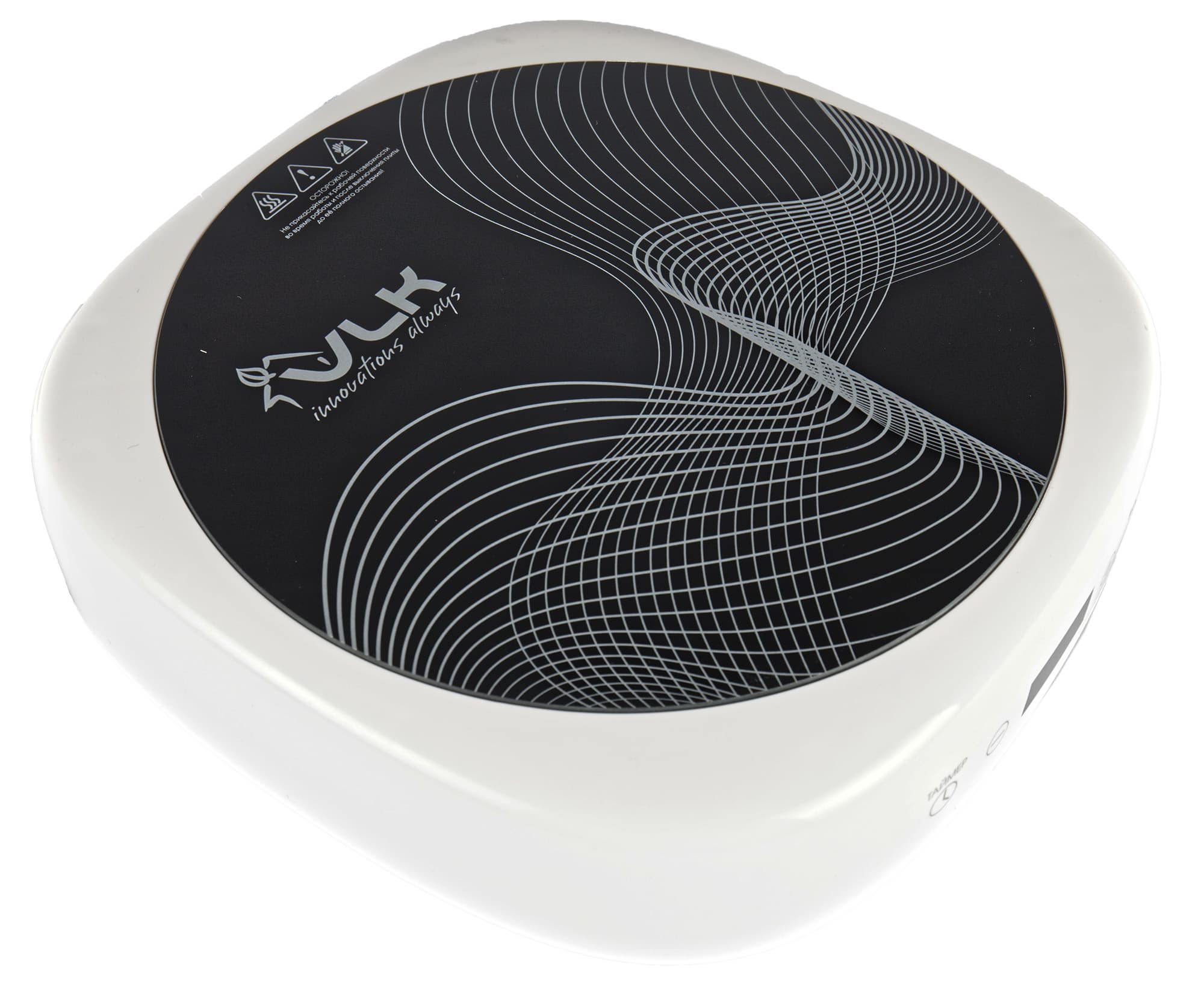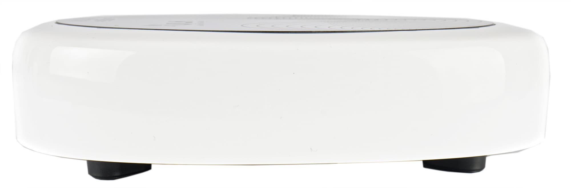 Прибор скорее похож на робот-пылесос, чем на кухонную плиту. Белый корпус со скругленными углами имеет непривычно большую толщину.