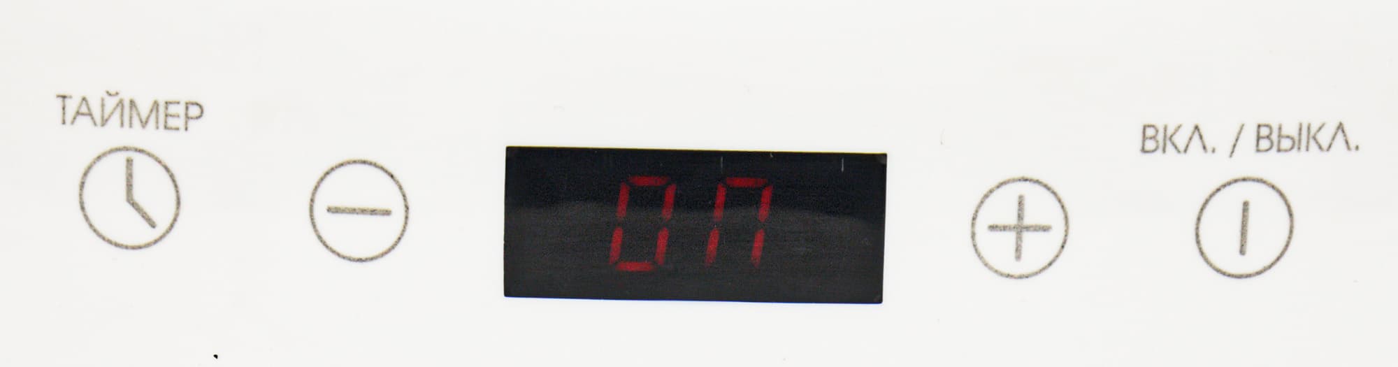 По центру располагается дисплей, на котором высвечивается мощность или время. Справа от дисплея находится кнопка «+» и кнопка включения, слева от дисплея кнопка «−» и кнопка таймера. При включении и наличии на поверхности подходящей емкости прибор включается на мощность 1300 Вт по умолчанию. Уменьшение и увеличение мощности или времени приготовления производится кнопками «+» и «−». Время приготовления можно задать кнопкой «таймер». Максимальное время 4 часа, шаг изменения времени — 1 минута.