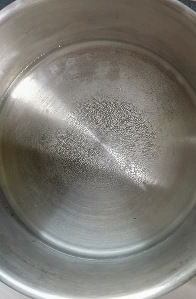 Для определения размера нагревательного элемента мы поставили на плитку кастрюлю большего размера, налив в нее немного воды. Через несколько секунд придонные пузырьки обозначили конфигурацию нагревательного элемента. Это круг диаметром 15-16 см см без пустот внутри.