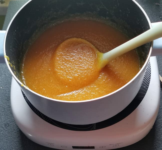 В готовый сахарный сироп вместе с ванилью выложили протертые в однородную массу апельсины и варили на малой мощности до готовности, постоянно помешивая.