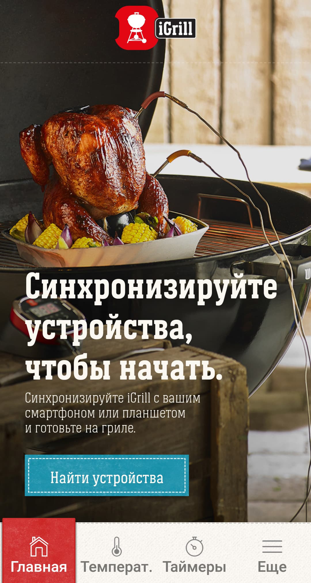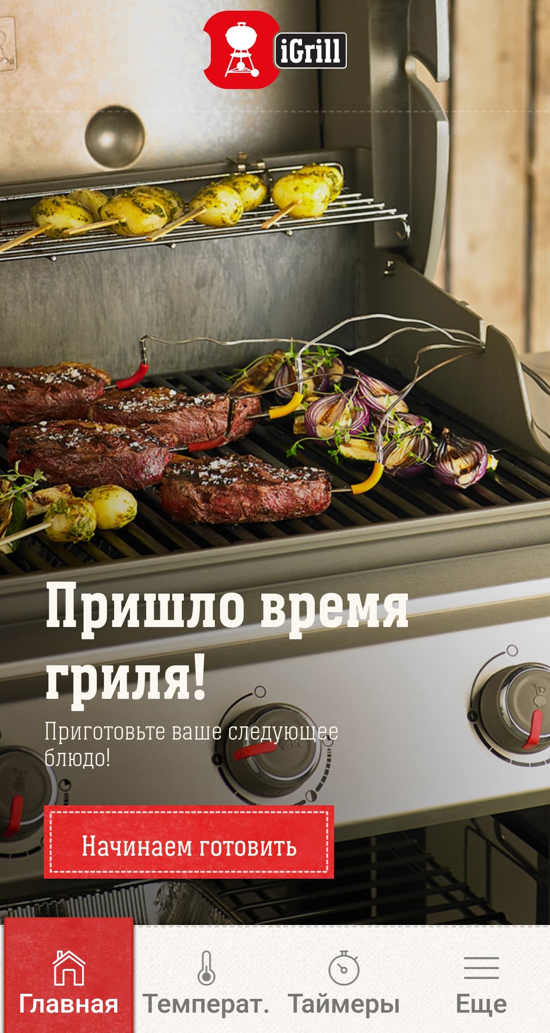 Все дальнейшее управление осуществляется дистанционным способом — через смартфон, подключенный к термометрам по Bluetooth, с помощью программы Weber iGrill. Она доступна в Apple Store и Google Play, мы тестировали версию для Android.