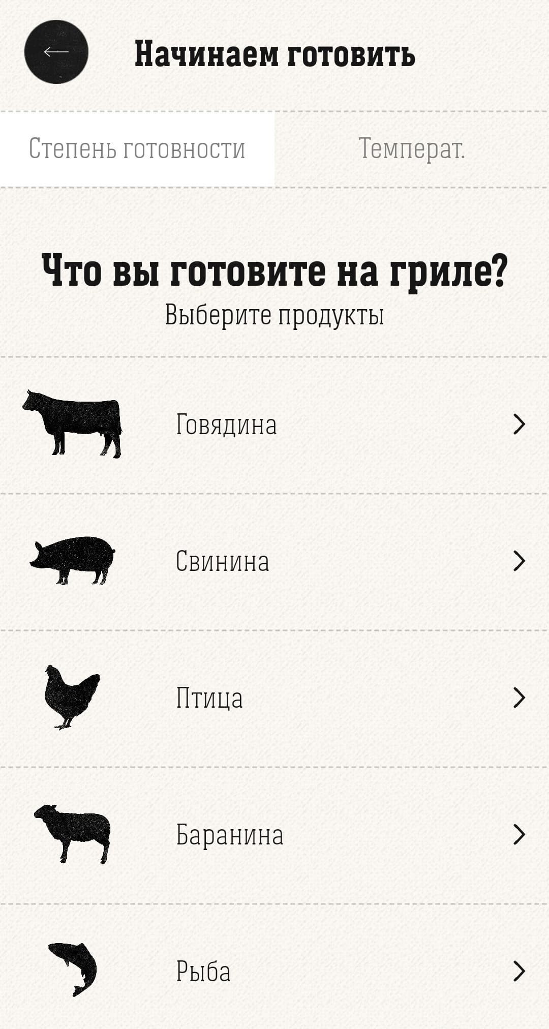 В этот момент мы были очень рады, что приложение для iGrill русифицировано: схемы разделки туш в разных странах различаются, и использование англоязычной версии заставляет порой основательно призадуматься не только о переводе терминов, но и о том, какой именно кусок мяса под тем или иным названием скрывается.