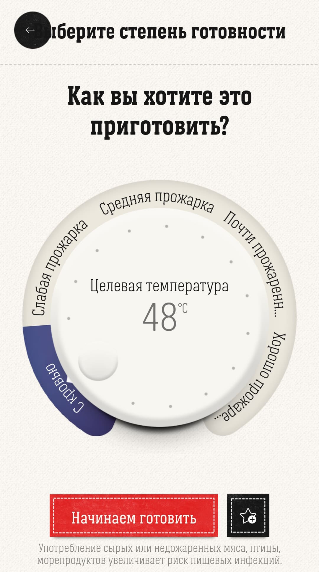 После нажатия кнопки «Продолжить» в случае iGrill Mini вам будет предложено приступить к собственно процессу готовки.