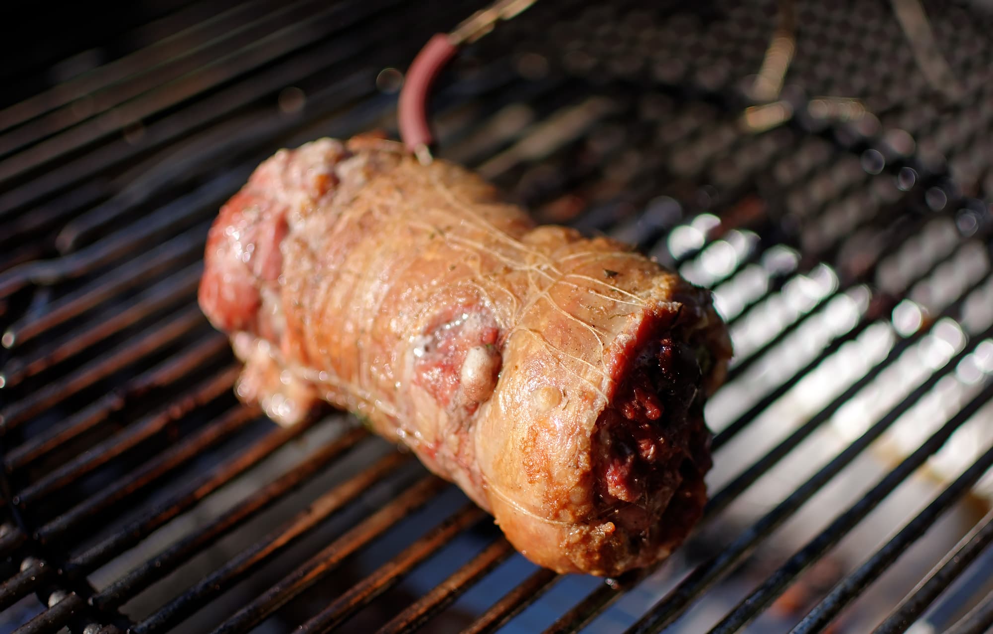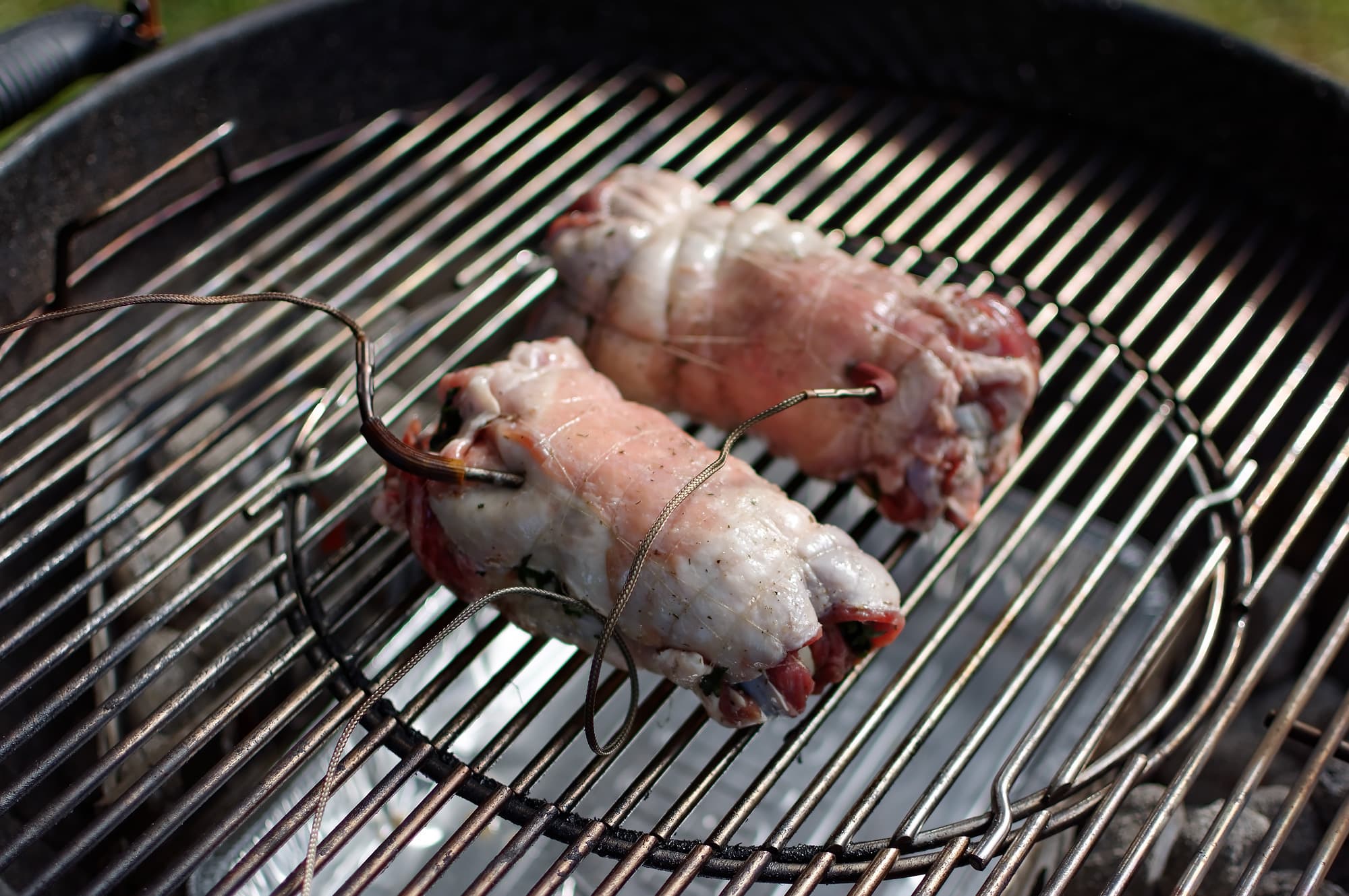 В каждый рулет поместили по щупу iGrill 2. Выбрали в меню рулет из ноги барашка почти прожаренный.