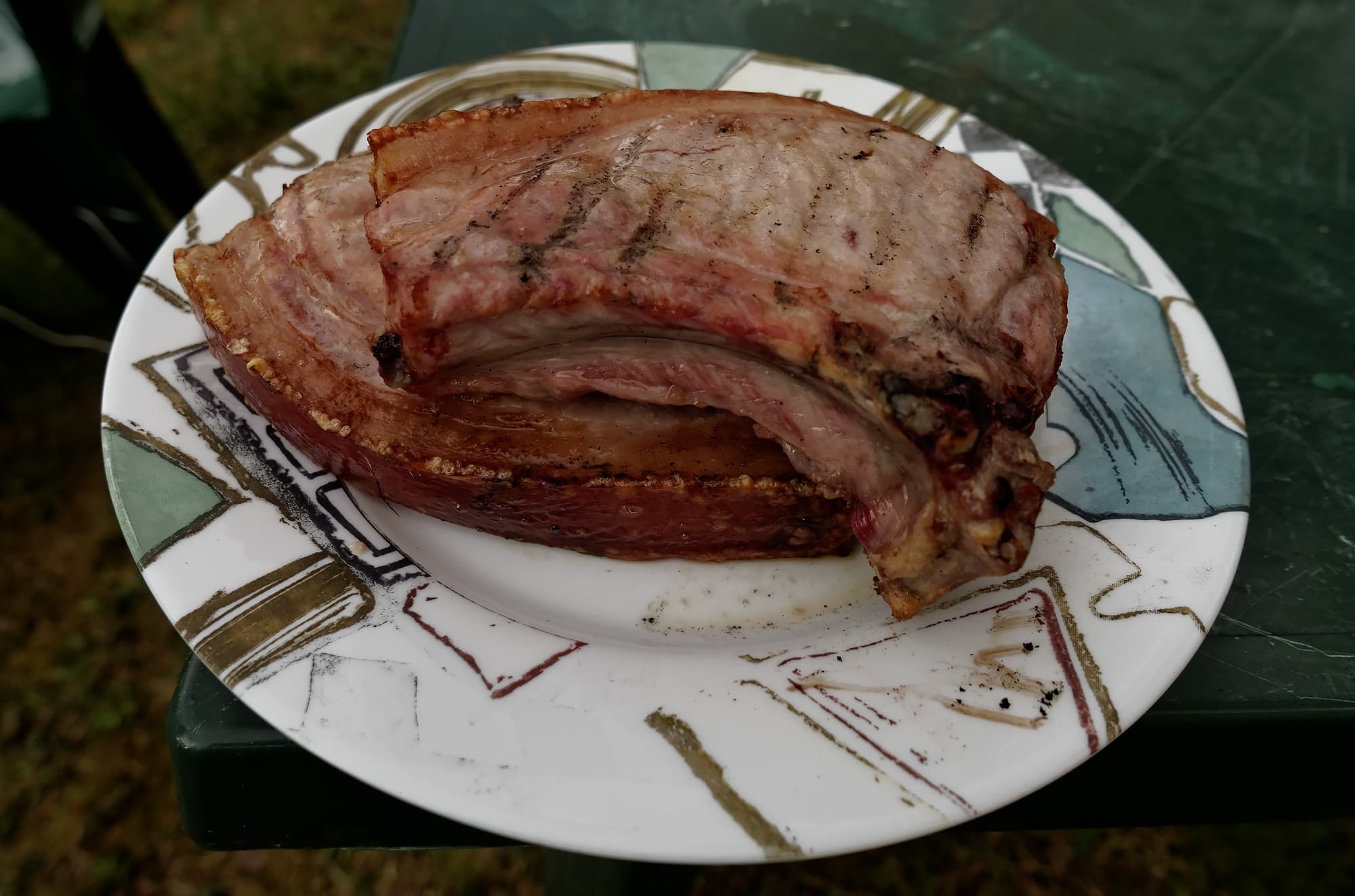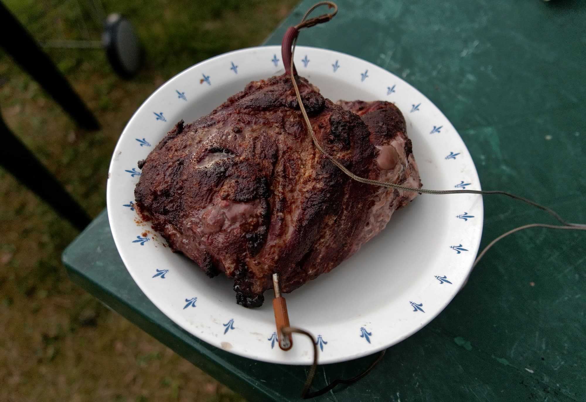 Как «поймать» такую степень прожарки без iGrill, мы не знаем: пересушить корейку — проще простого, да и непрожаренная свинина мало у кого вызовет одобрение.