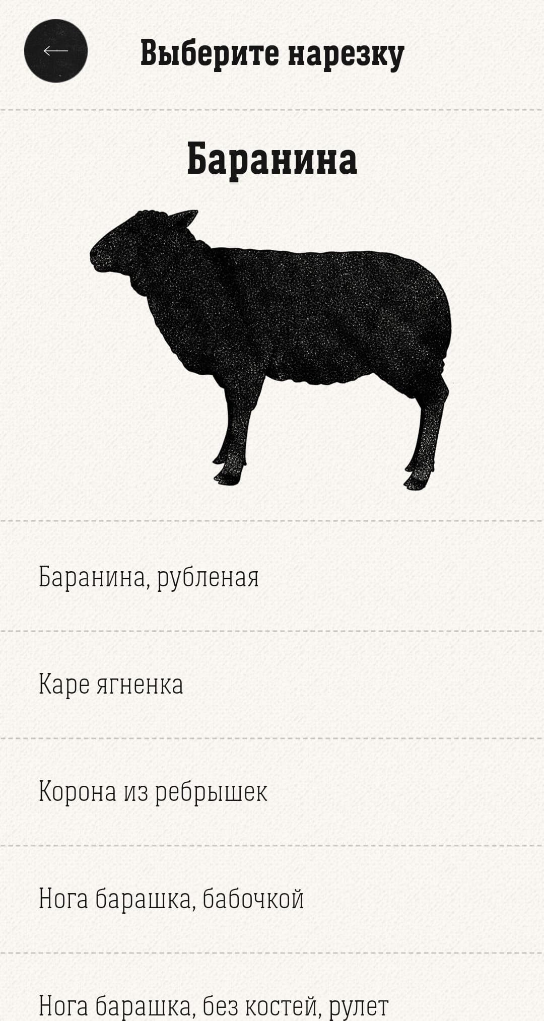 - в приложении есть не все привычные отрубы — например, нет свиной шеи