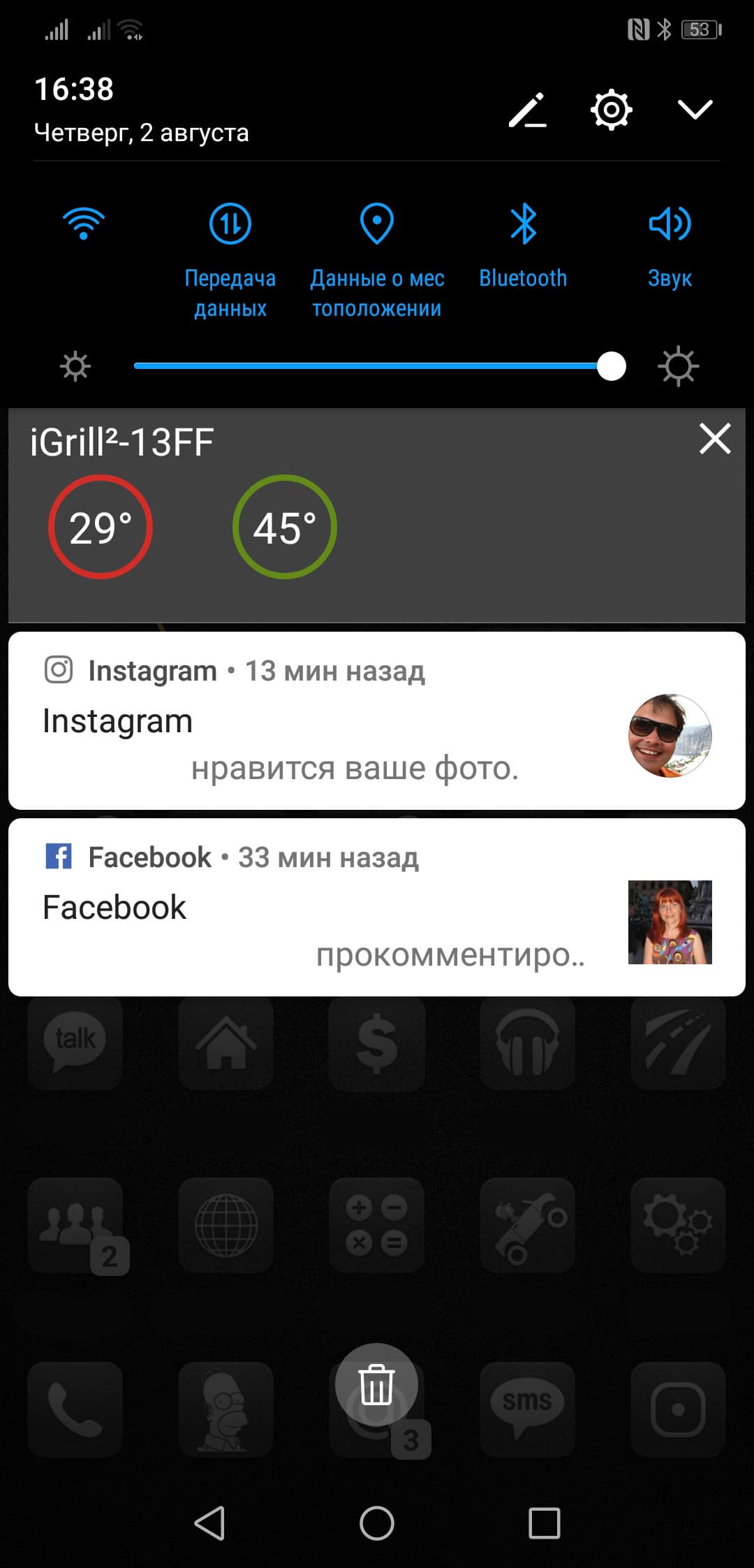 Также текущую температуру всех подключенных датчиков можно посмотреть, смахнув сверху вниз панель уведомлений.