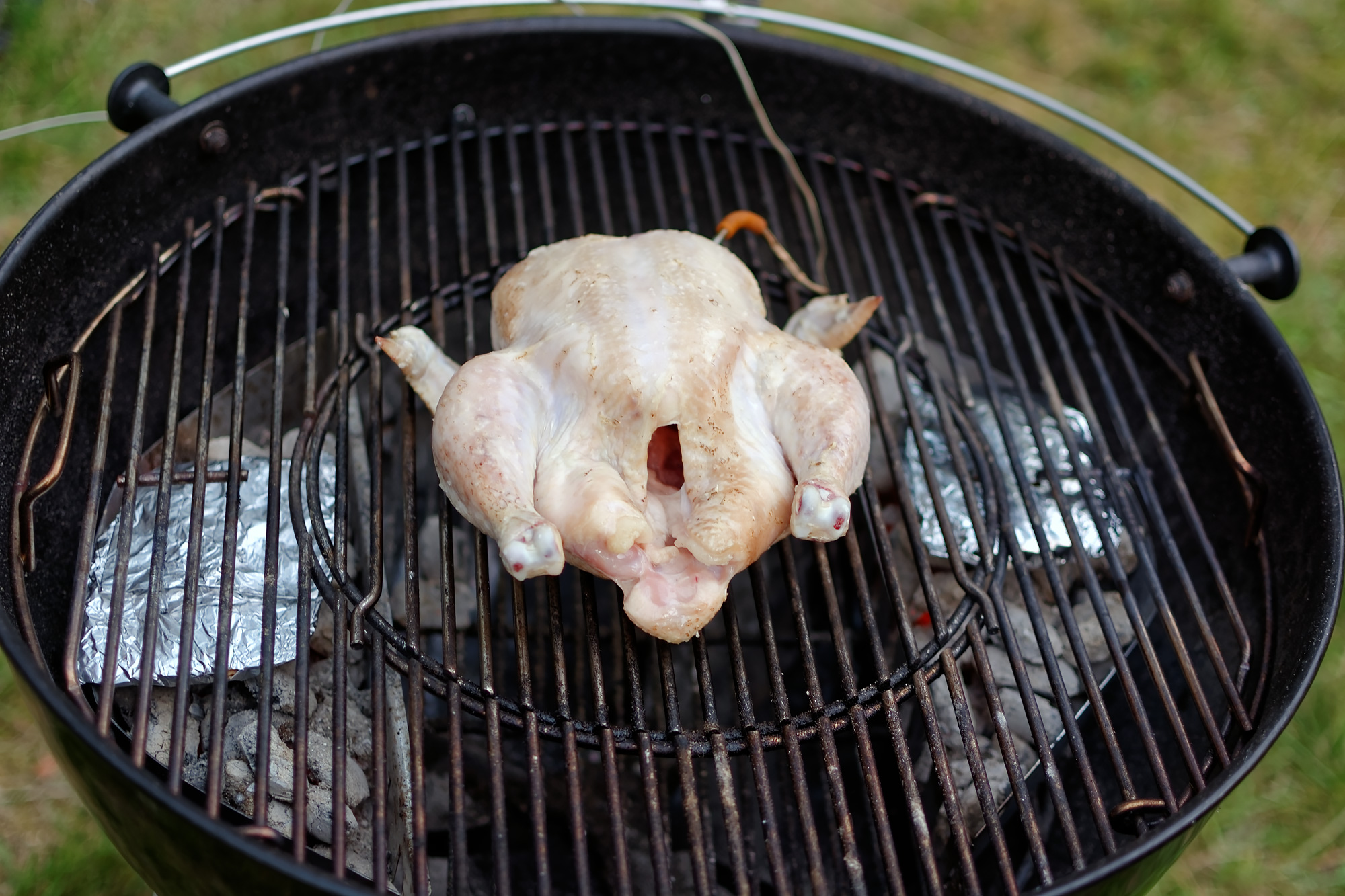 По достижении нужной температуры курицу сняли с гриля и немедленно съели. Золотистые бока, полностью готовые ножки и сочная грудка, заставляющая каждого нового дегустатора изменять представление об этой части курицы как о чем-то сухом и невкусном.