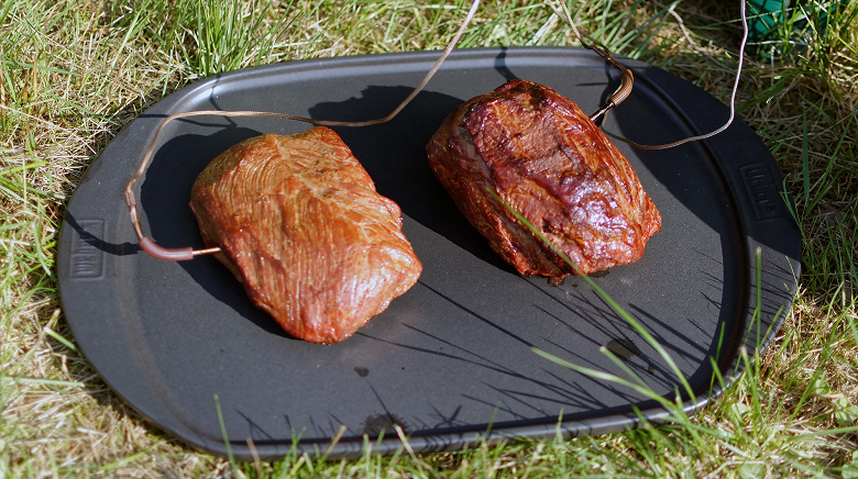 Примерно за сорок минут мы получили идеальное копченое мясо свиной грудинки.