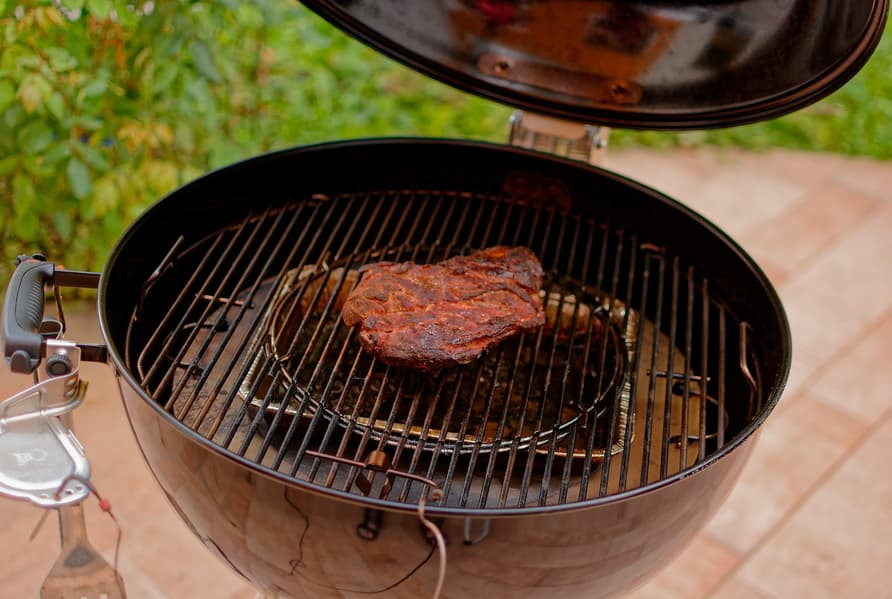Здесь мы переходим к испытаниям новых аксессуаров: кольца для угля и диффузора-жароотсекателя. Вместе они позволяют реализовать американский метод приготовления «low and slow» — завоевавший популярность во всем мире способ медленной готовки на низких температурах.
