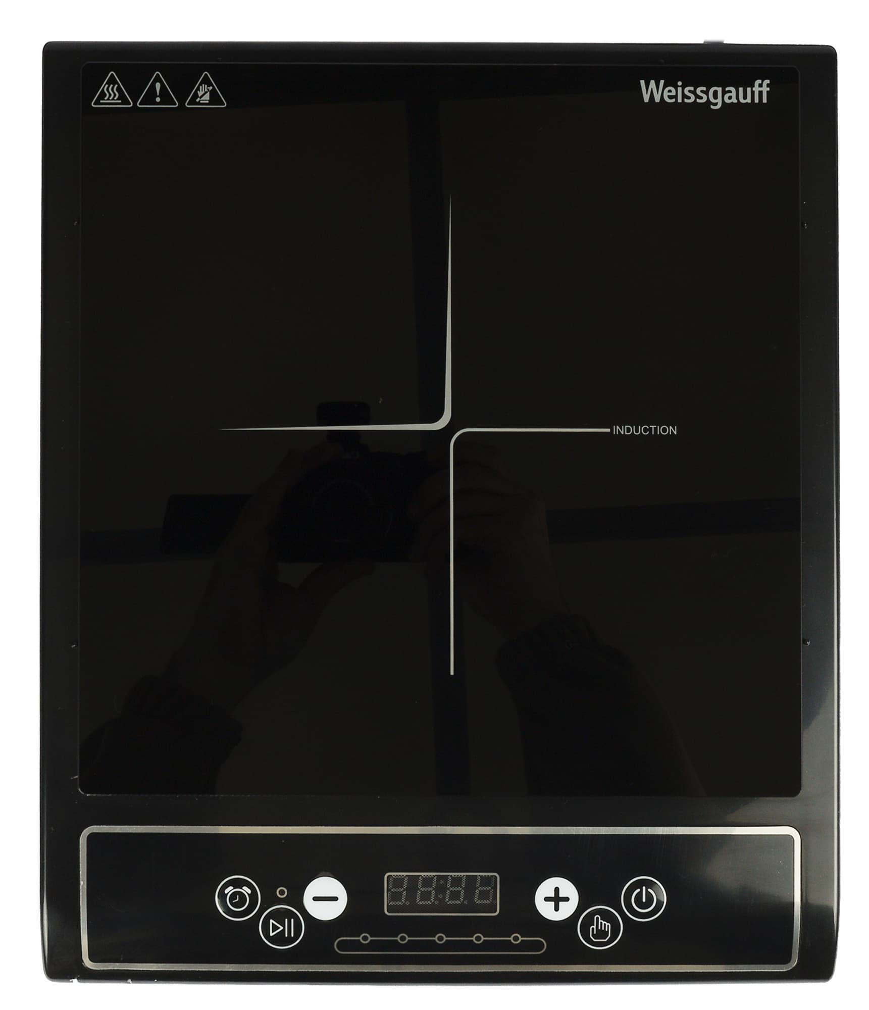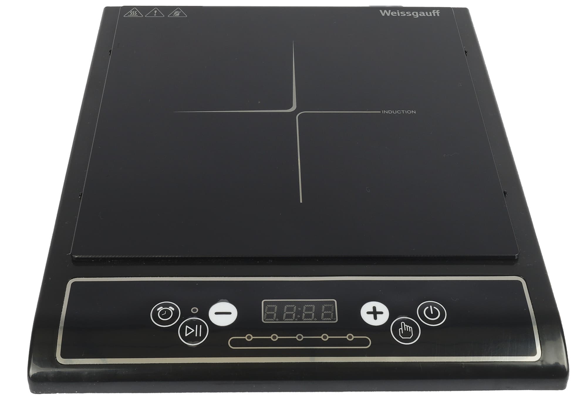 Weissgauff WHI 1528 производит впечатление простого прибора без изысков. Плитка выглядит современно, симпатично, но глянцевое пластиковое покрытие выдает принадлежность прибора к бюджетной категории. В ходе внимательного осмотра плитки со всех сторон мы отметили аккуратную сборку устройства и отсутствие каких-либо дефектов.