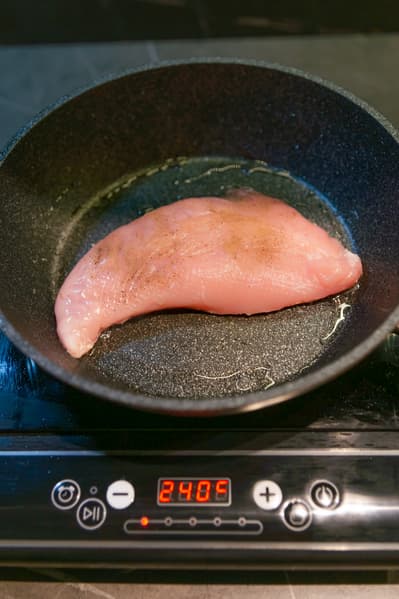 Обжарили мясо на сковороде при максимальных 240 °C.