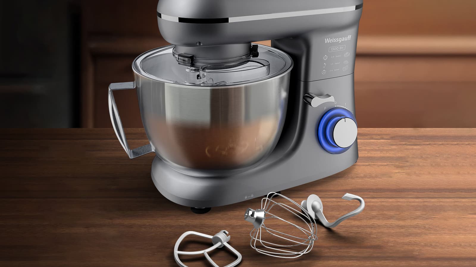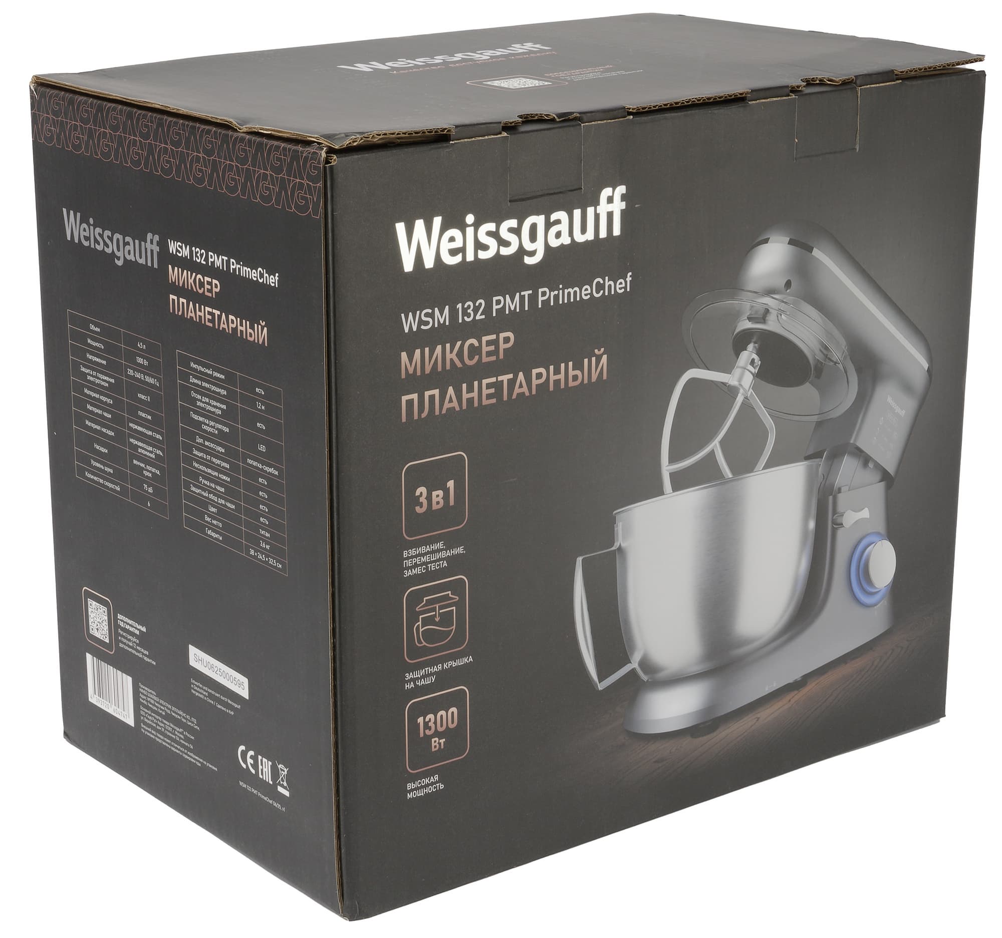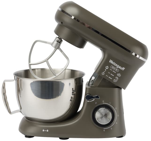 Сегодня мы обозреваем и тестируем классический планетарный миксер Weissgauff WSM 132 PMT. В комплекте к нему идут 3 привычные съемные насадки — крюк для замешивания теста, венчик для взбивания и лопатка для смешивания мягких продуктов. У прибора 6 скоростей, имеется импульсный режим, а дежа из нержавеющей стали имеет объем 4,5 литра.