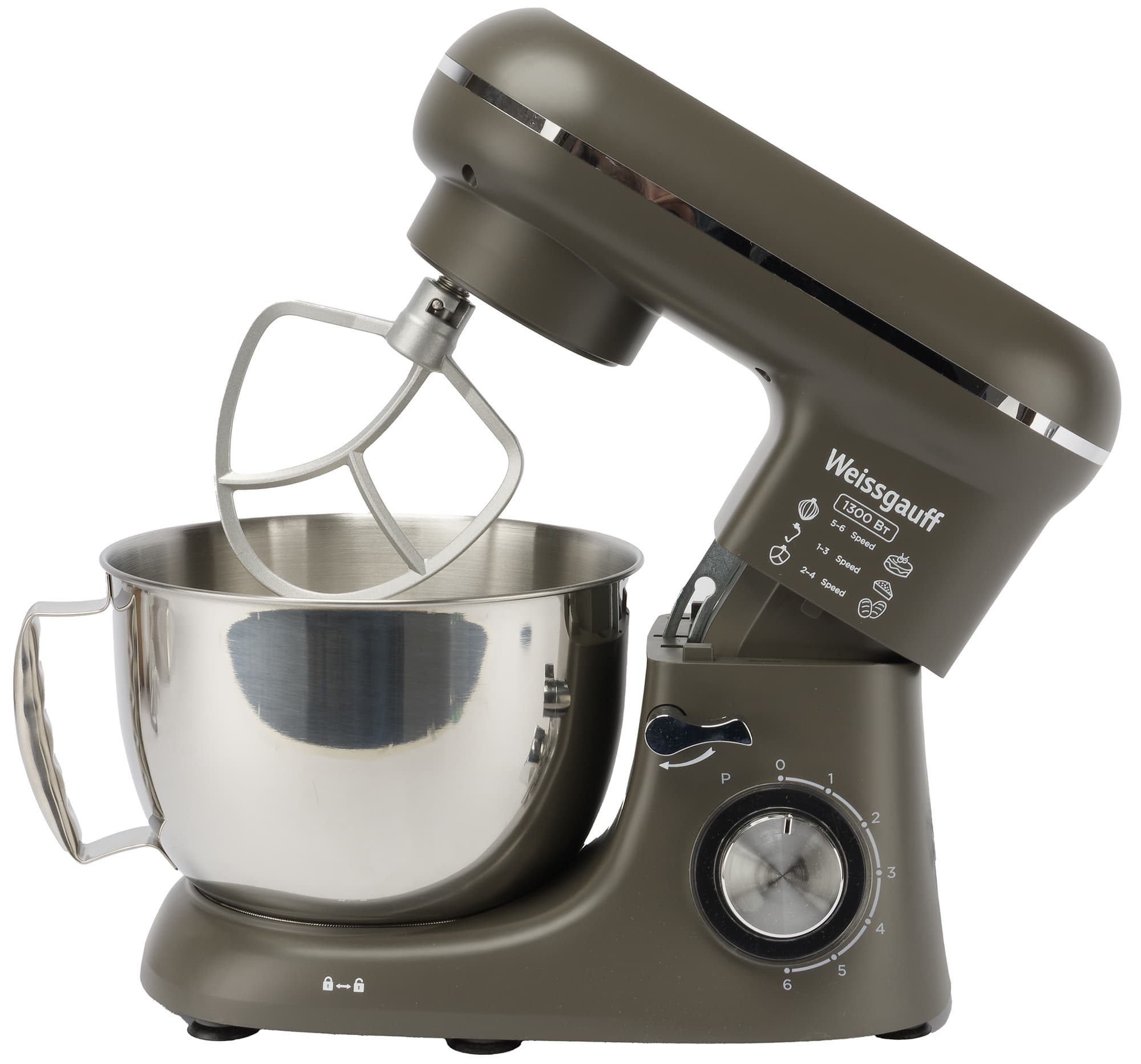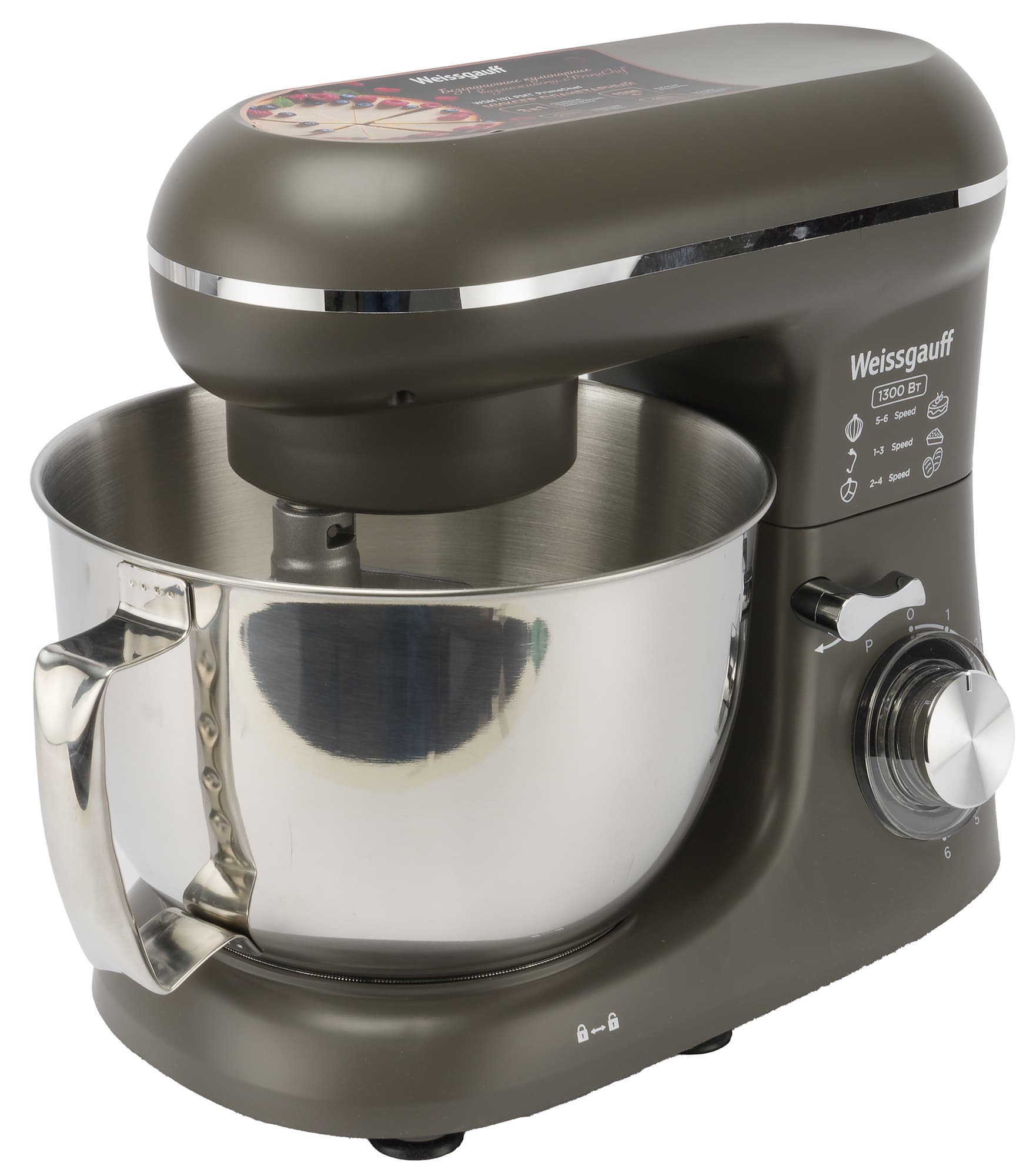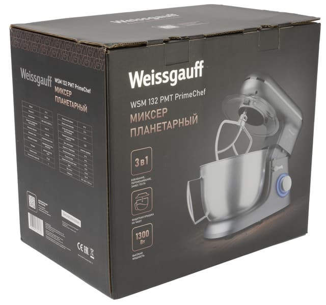 Weissgauff WSM 132 PMT Prime Chef — простой и удобный тестомес. Этот прибор отлично показал себя в тестировании, он не занимает слишком много места и действительно полезен на кухне. У прибора есть 6 скоростей и импульсный режим работы, он имеет вполне лаконичный дизайн, удобные элементы управления, и за ним легко ухаживать.