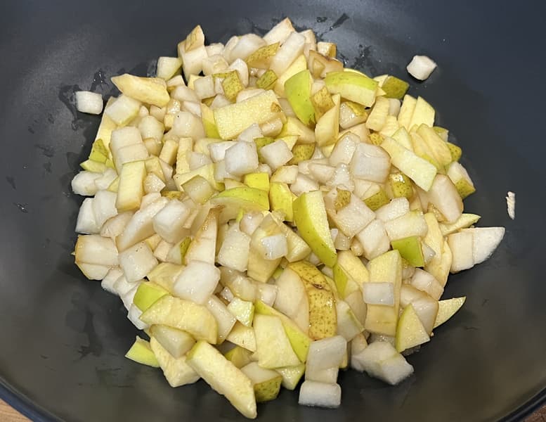 Яблоки порезали на мелкие кусочки и отложили в сторону.