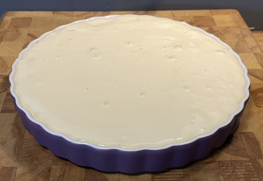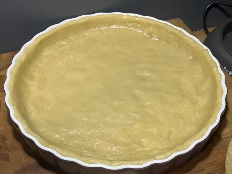 Тесто выложили в форму и равномерно распределили по ней.
