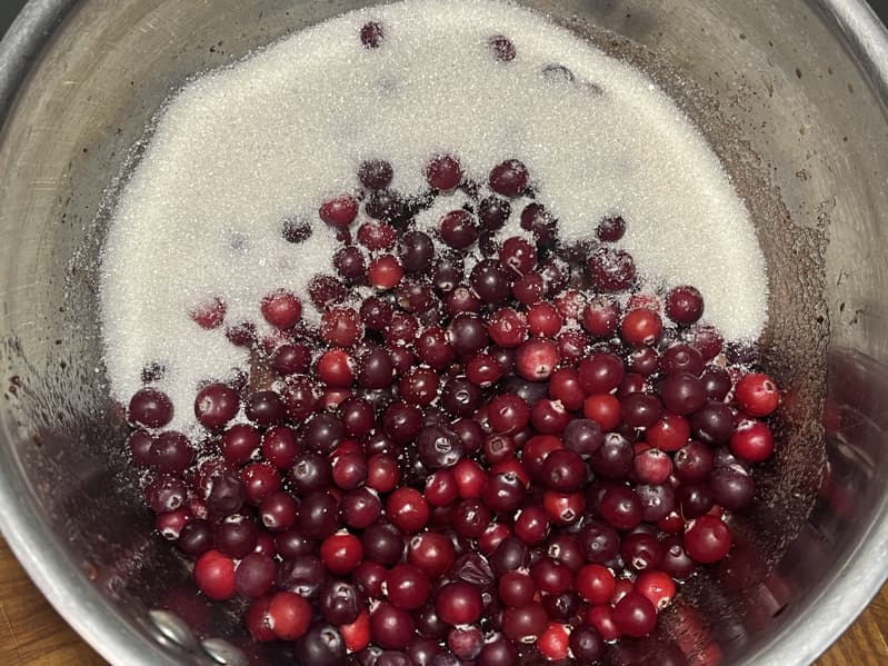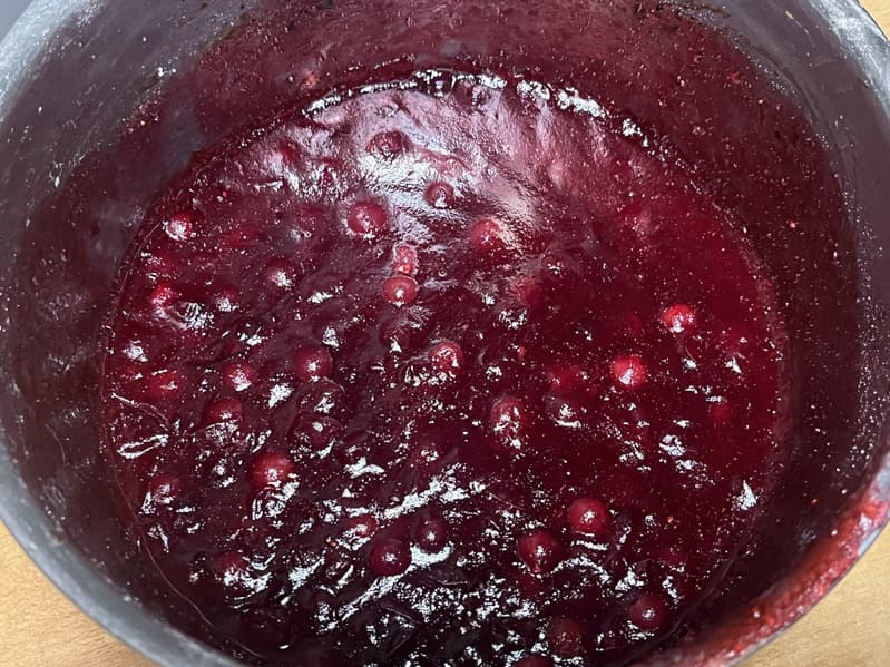 Потом точно так же поступили и с клюквой. Только эти ягоды еще размяли во время варки и добавили к ним крахмал.