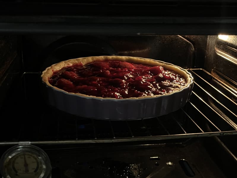 По истечении заданного времени достали пирог, убедились, что с ним всё хорошо, и оставили его остывать.