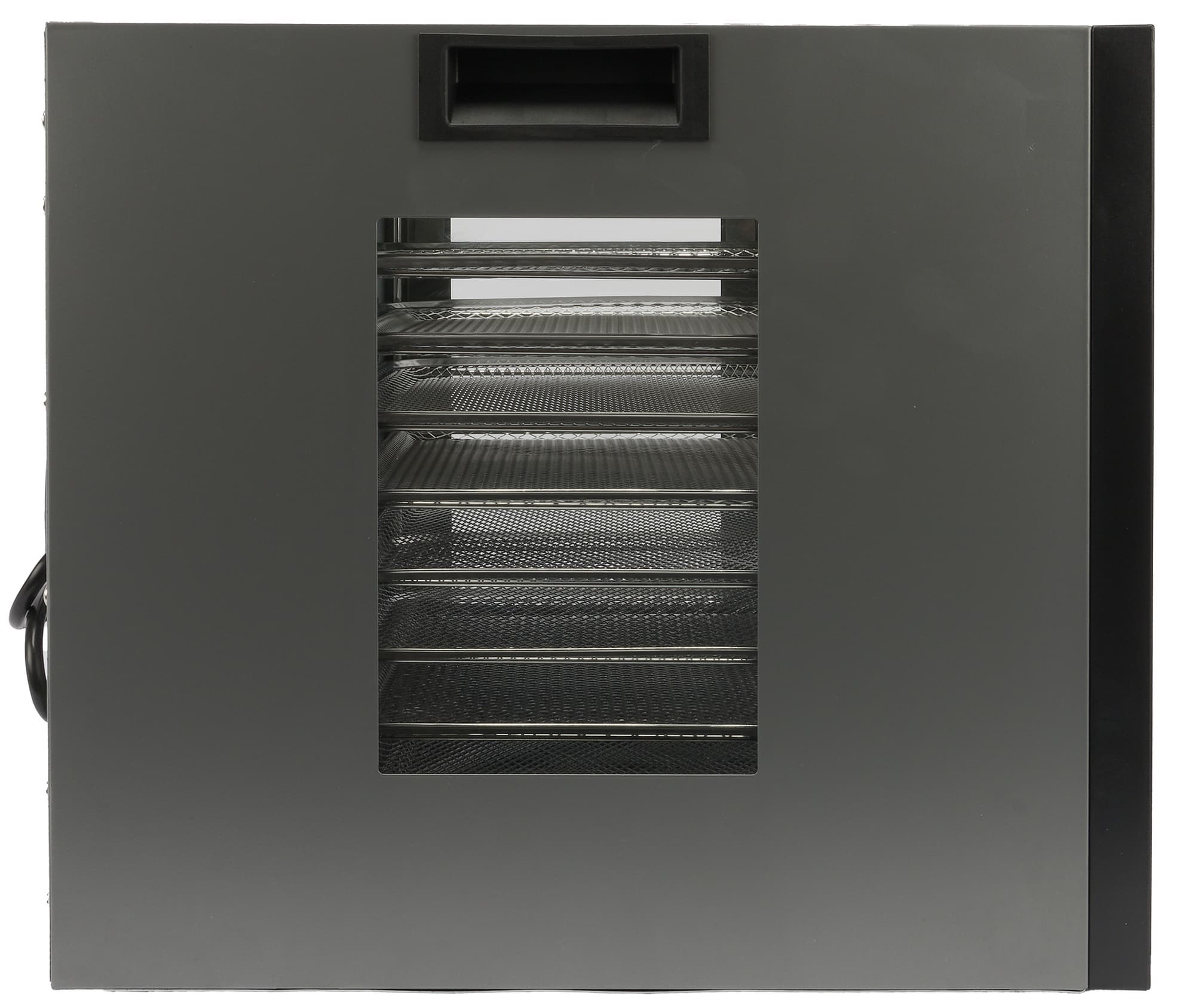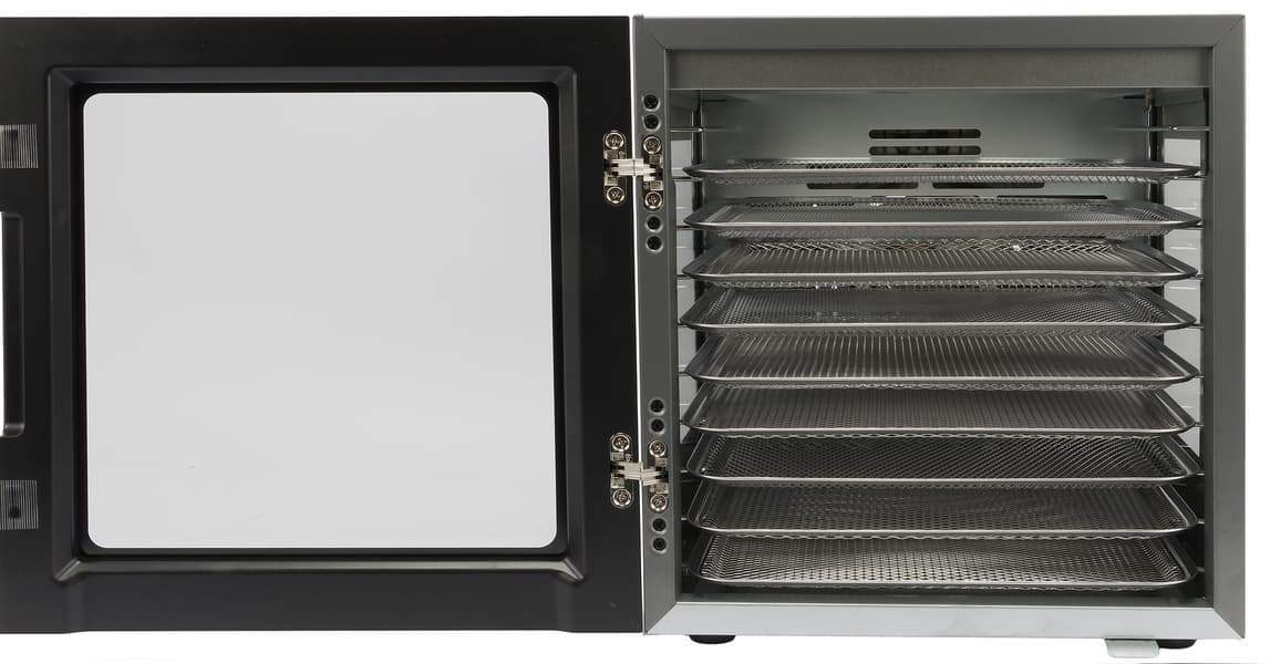 Благодаря остеклению даже при своих не самых скромных габаритах устройство не выглядит громоздким. Нейтральная расцветка и строгая геометрия без лишних декоративных элементов позволят дегидратору органично вписаться в любой современный интерьер, не создавая лишнего визуального шума.