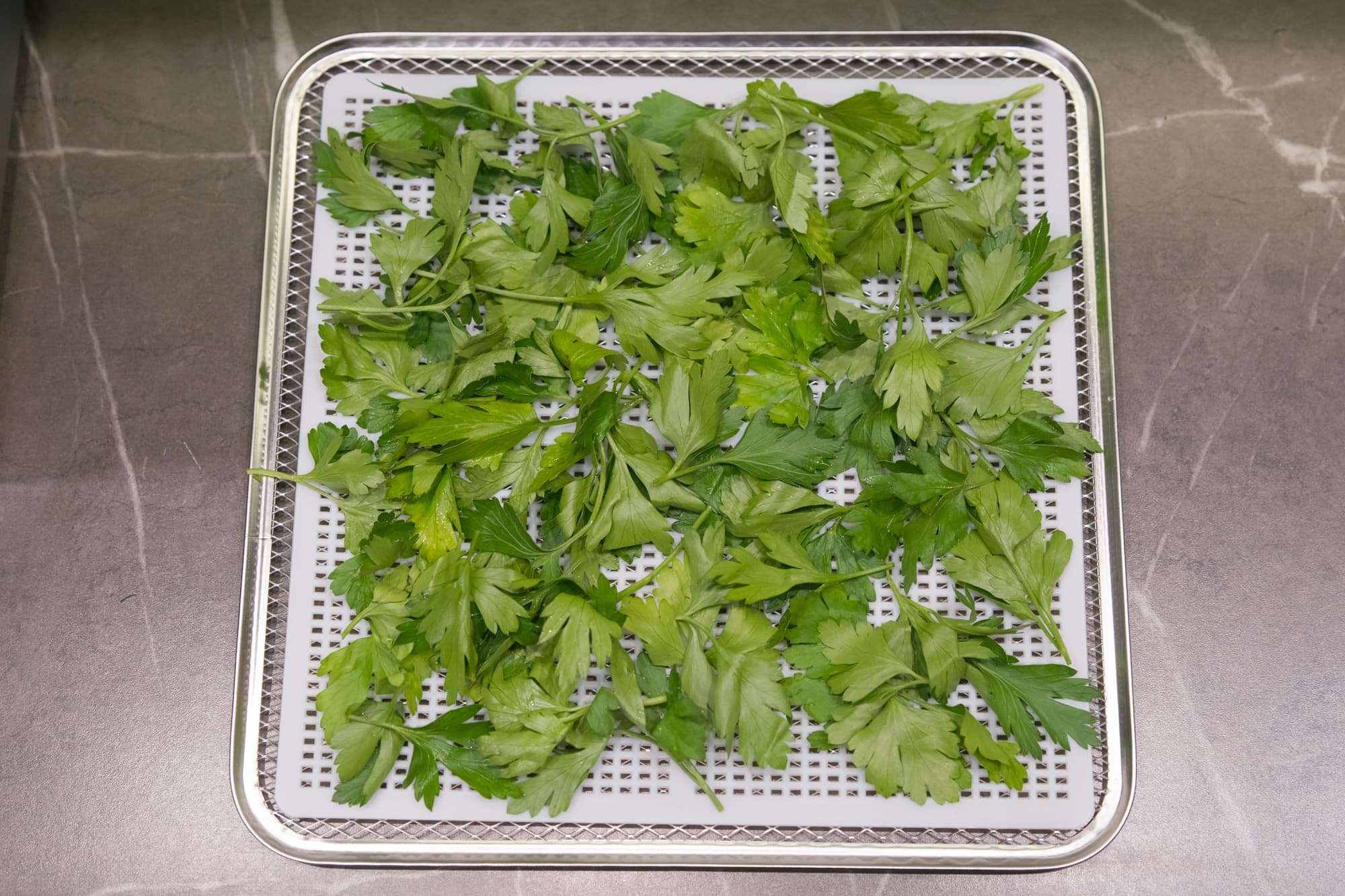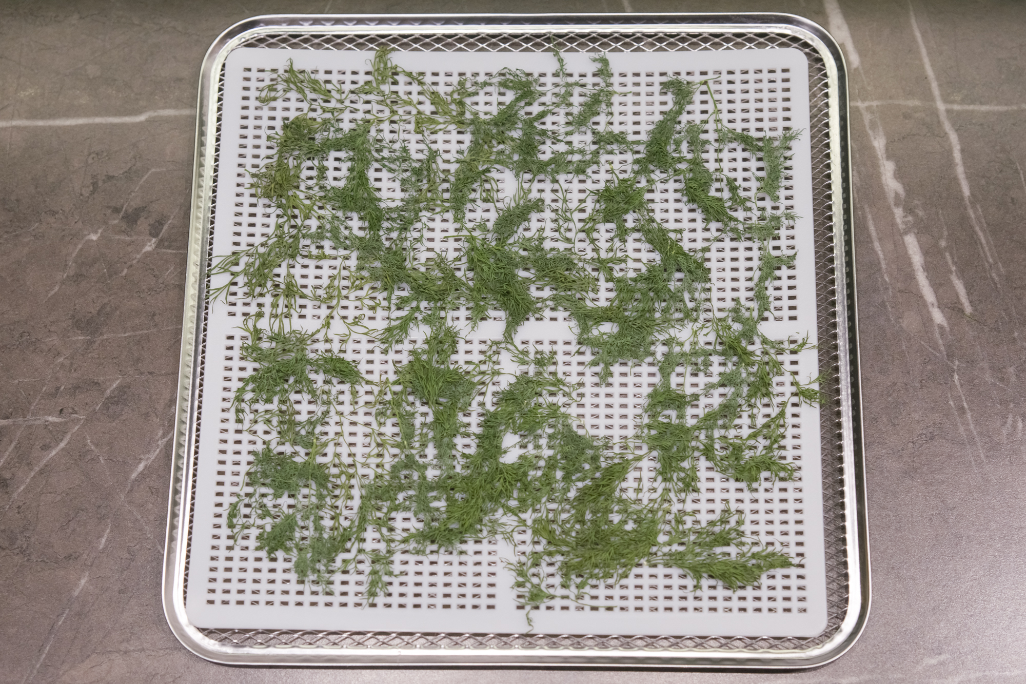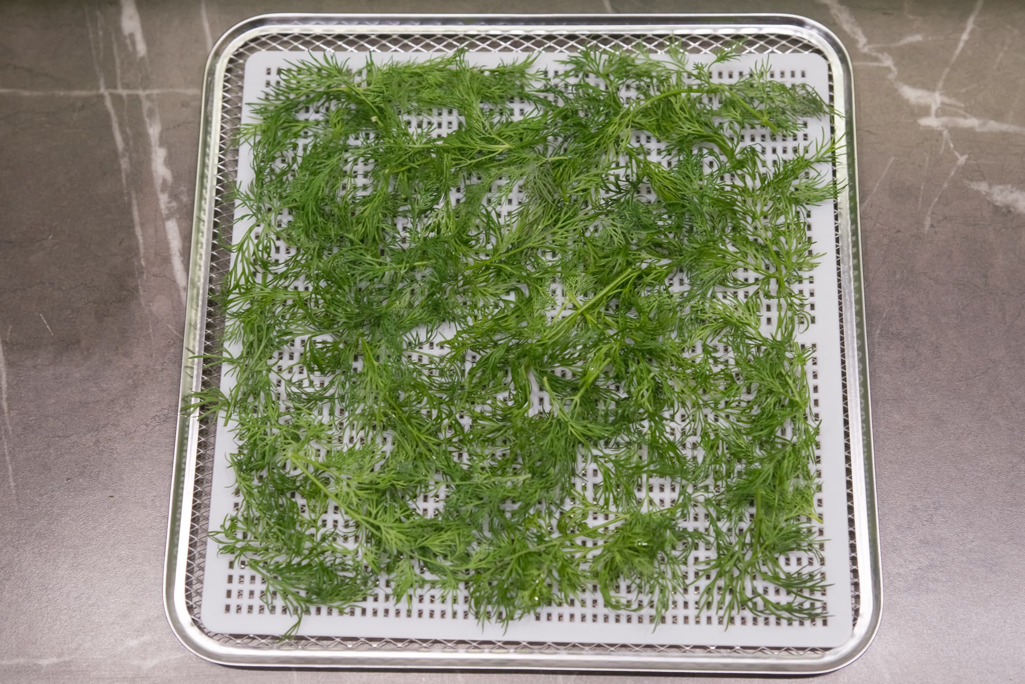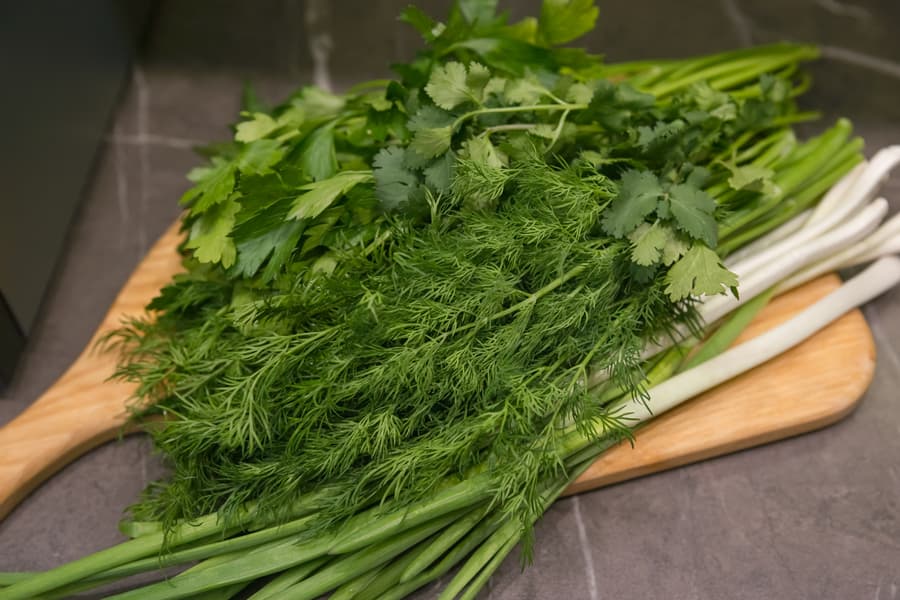 Веточки укропа и петрушки отделили от основного стебля. На одну сетку поместилось около 25 г.