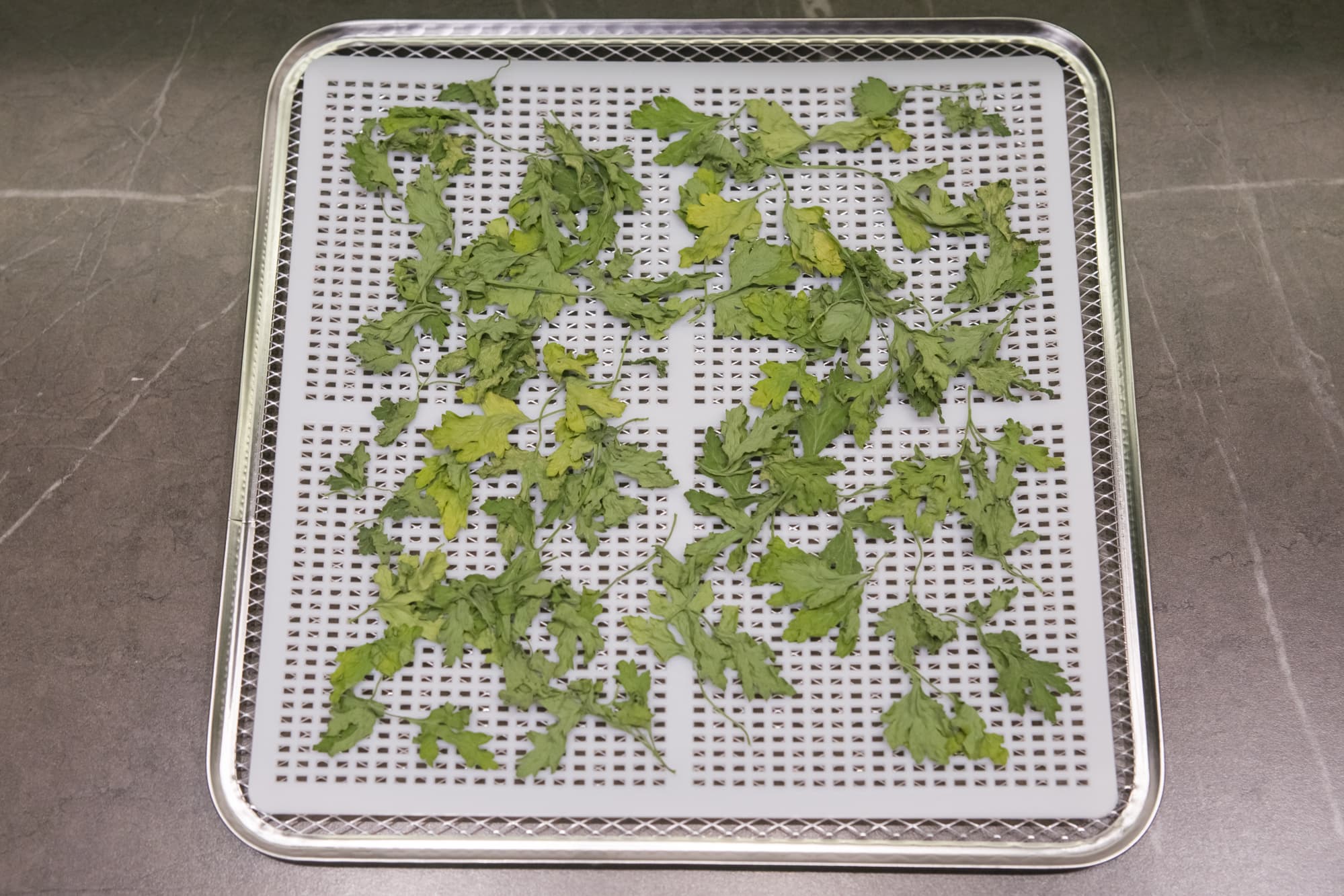 Полностью лишенная влаги зелень легко крошилась при перетирании пальцами.