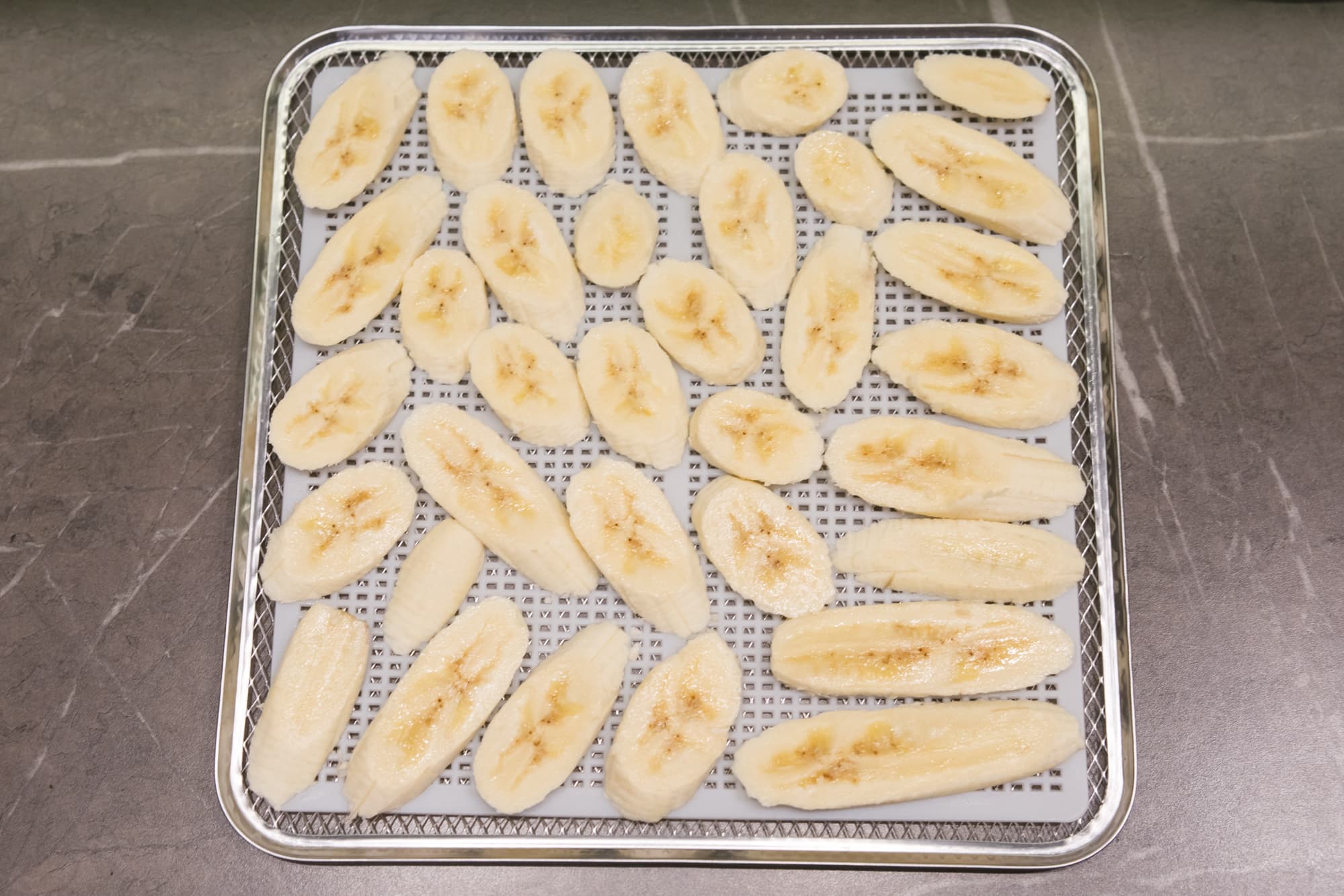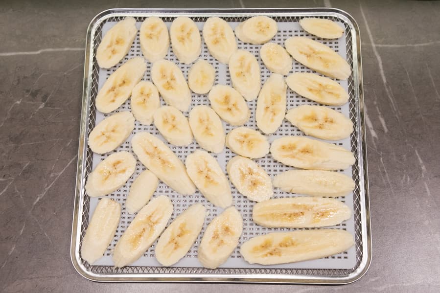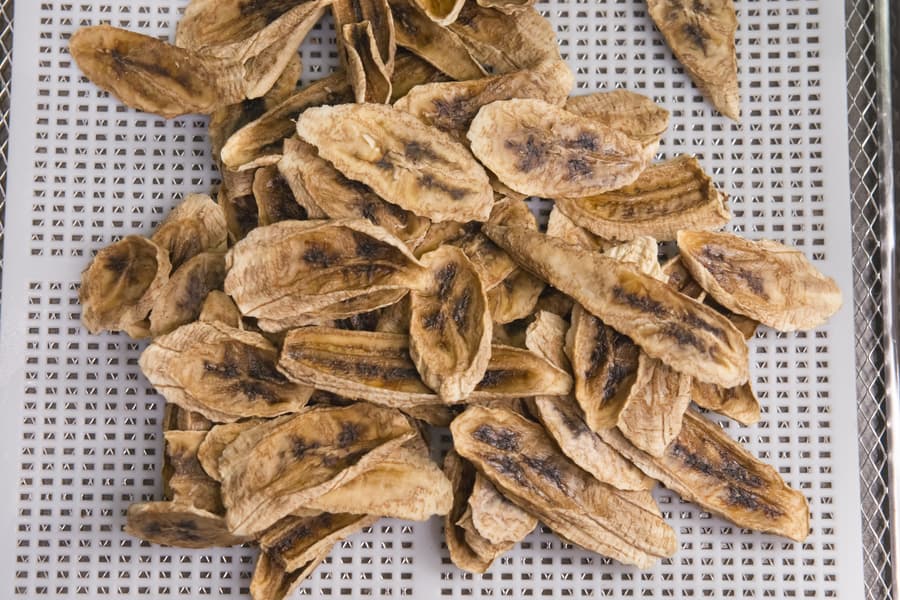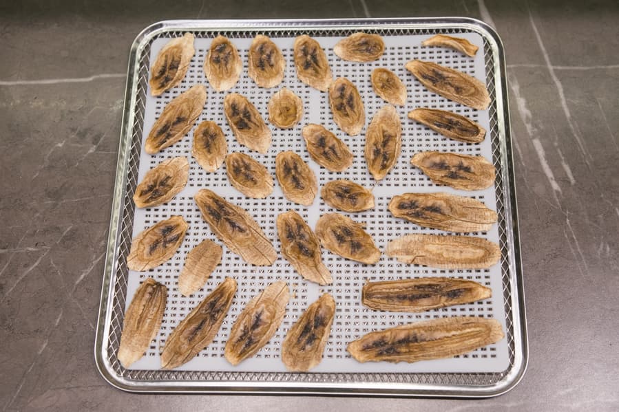 Нарезанный тонкими ломтиками фрукт сушился в специально предусмотренном для него режиме. По умолчанию для бананов дегидратор выставляет 75 °C на 12 часов.