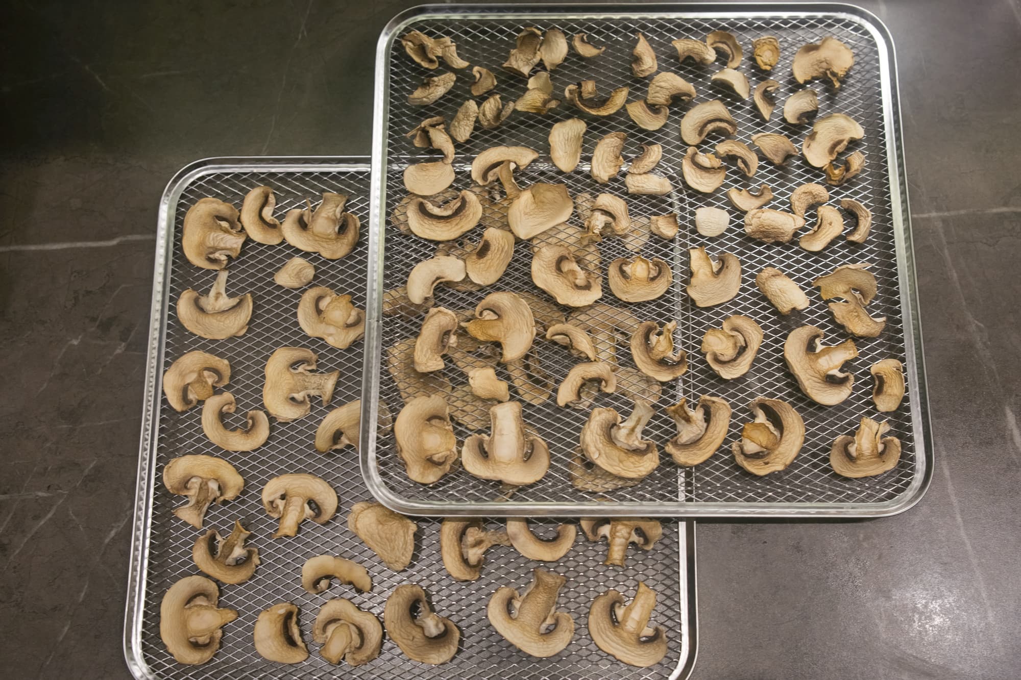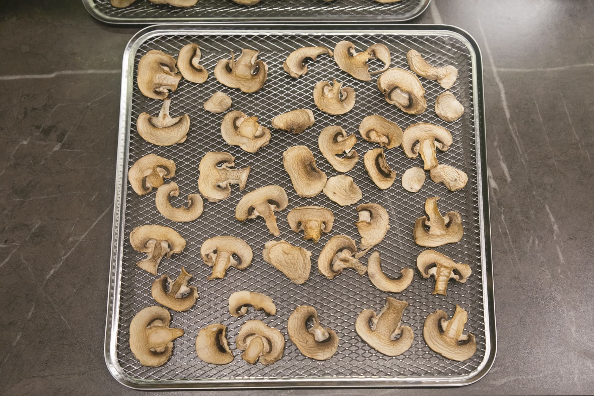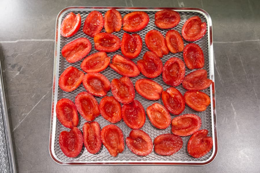 На поддонах с томатами и чесноком в процессе был замечен легкий перегрев незначительного количества долек, лежащих у самого вентилятора, поэтому для абсолютно равномерной просушки один раз за весь цикл мы все же перевернули поддоны.