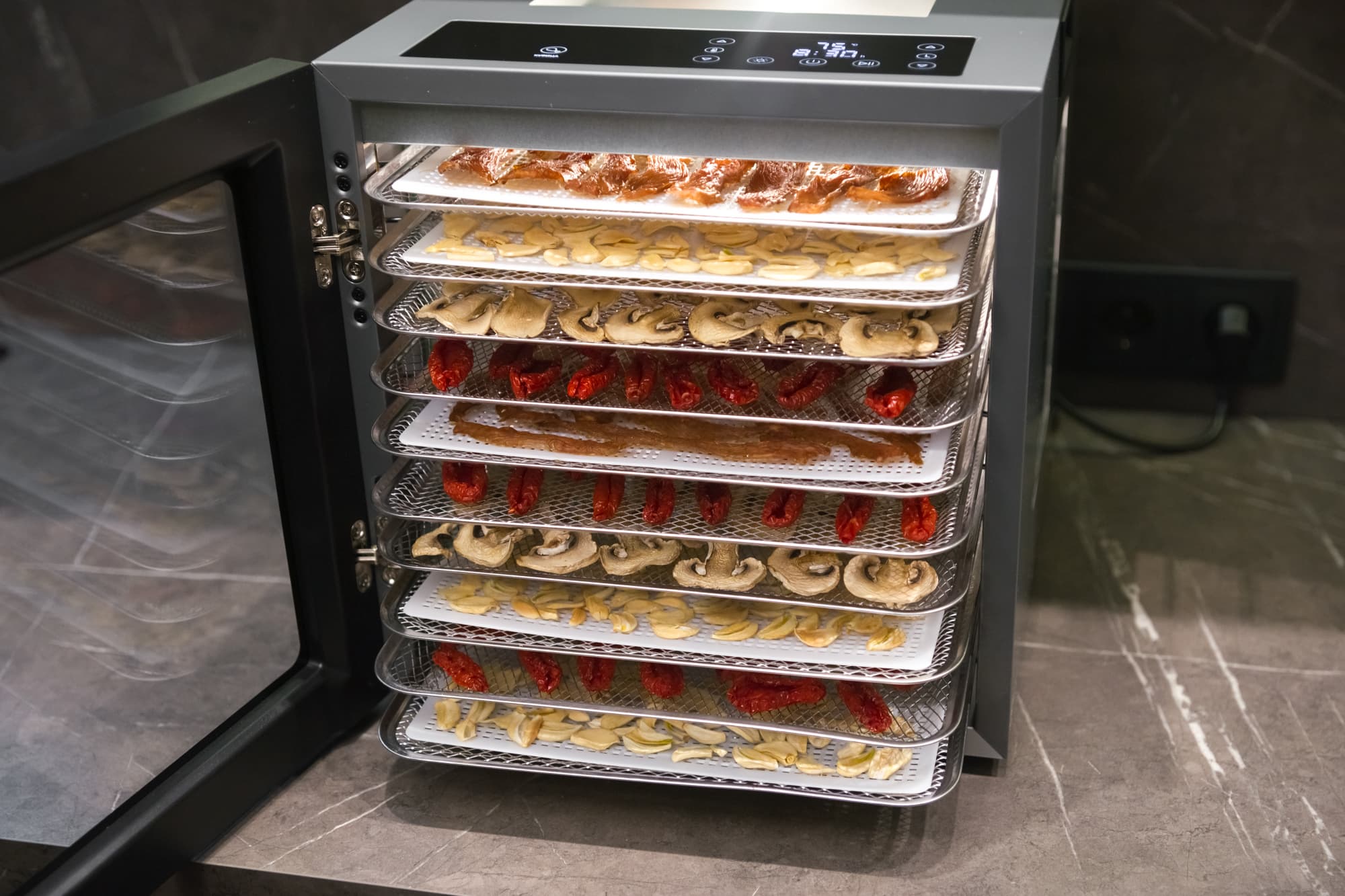 Наличие в доме электросушилки означает всегда вкусные полезные снеки, натуральные специи по собственному рецепту, вяленые закуски из овощей и мяса и сохраненный урожай, который обеспечит витаминами на осенне-зимний период.