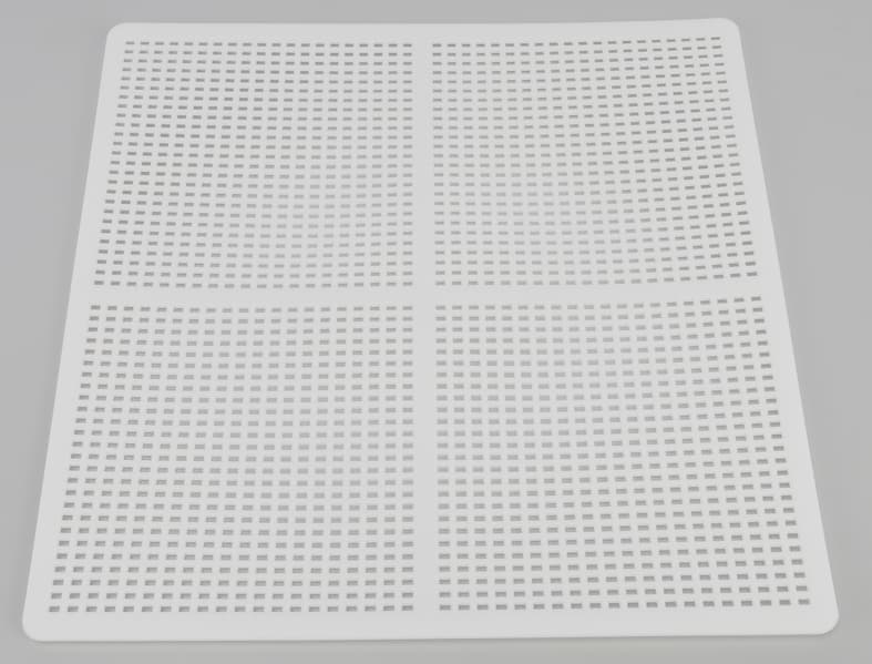 Конструкция позволяет сушить продукты разного размера, для этого достаточно просто вытащить лишние решетки. Решетки размером 39×39 см выполнены из нержавеющей стали. Сетка крепкая, при надавливании не деформируется.