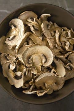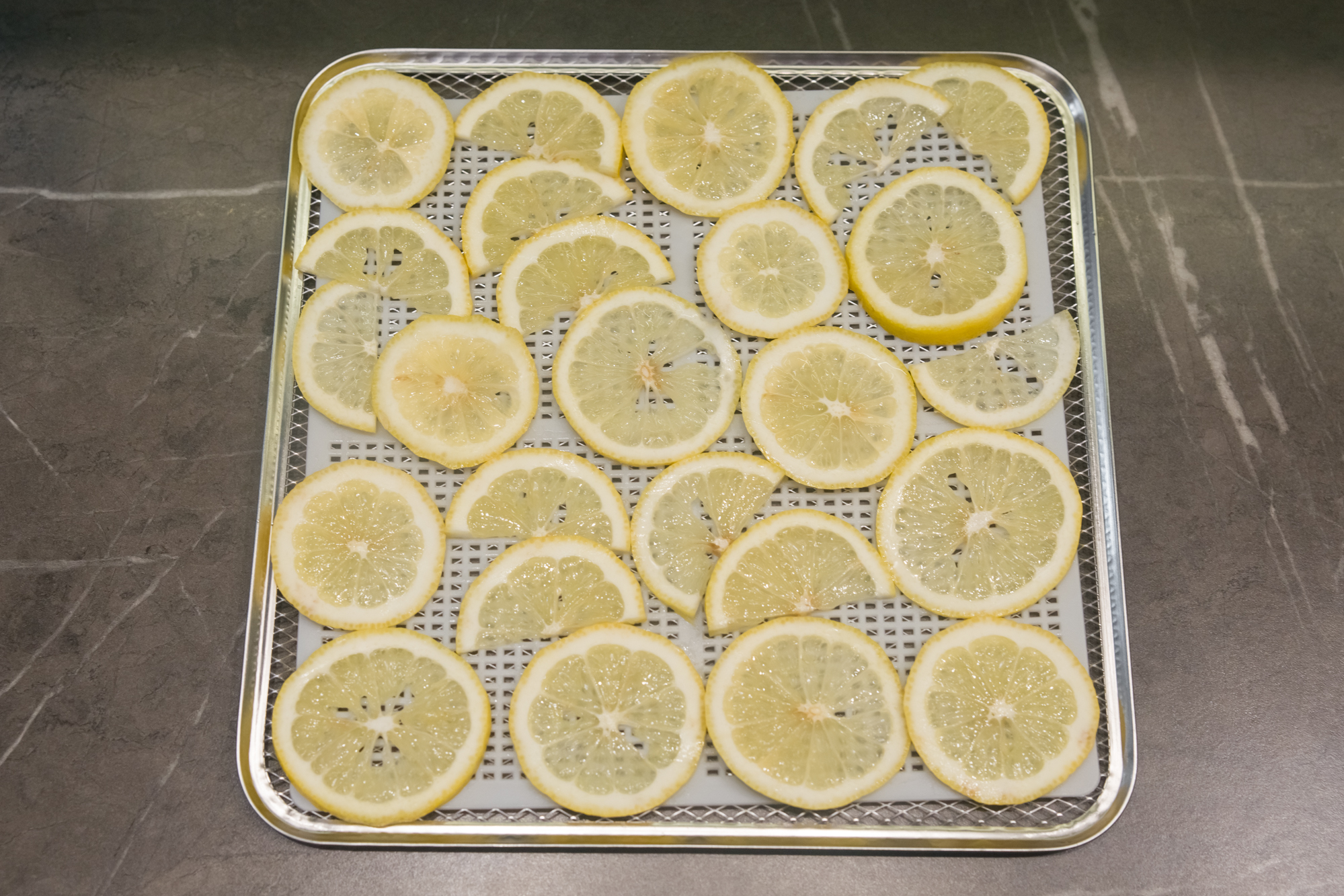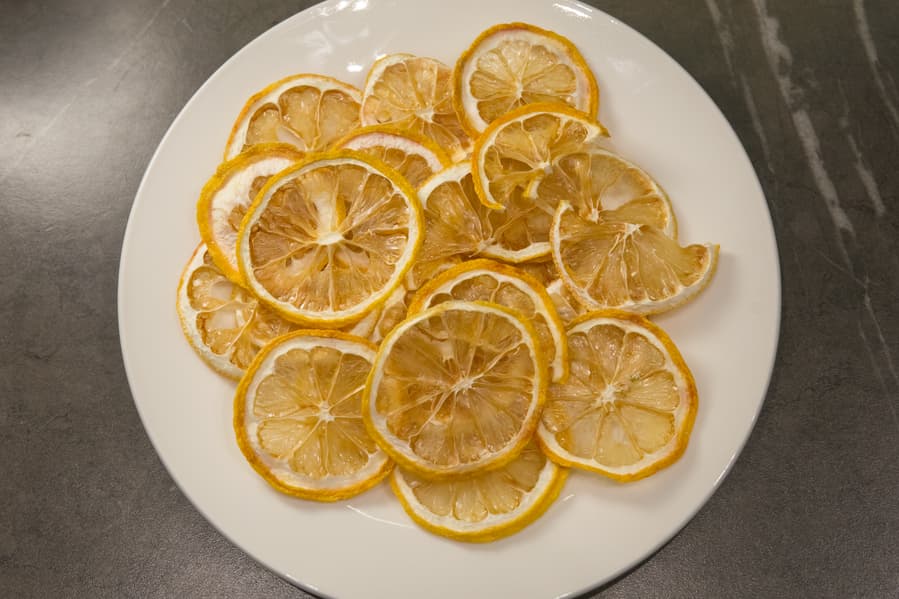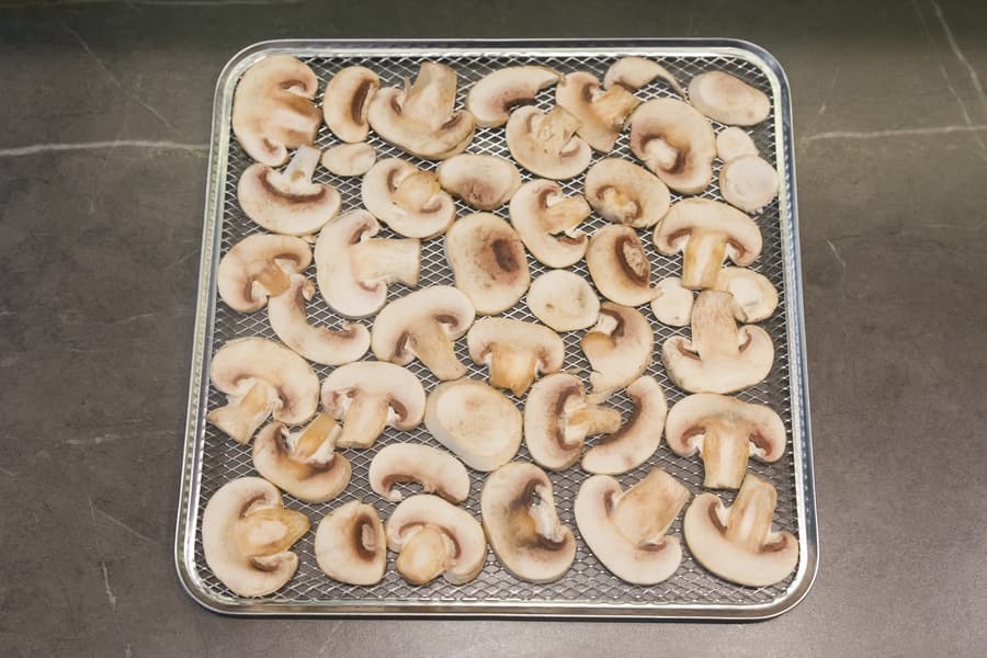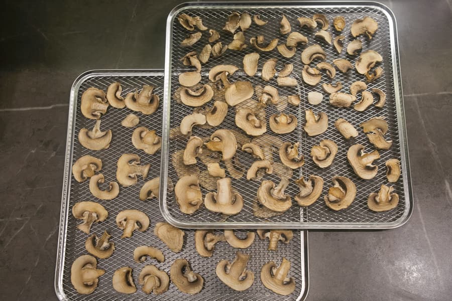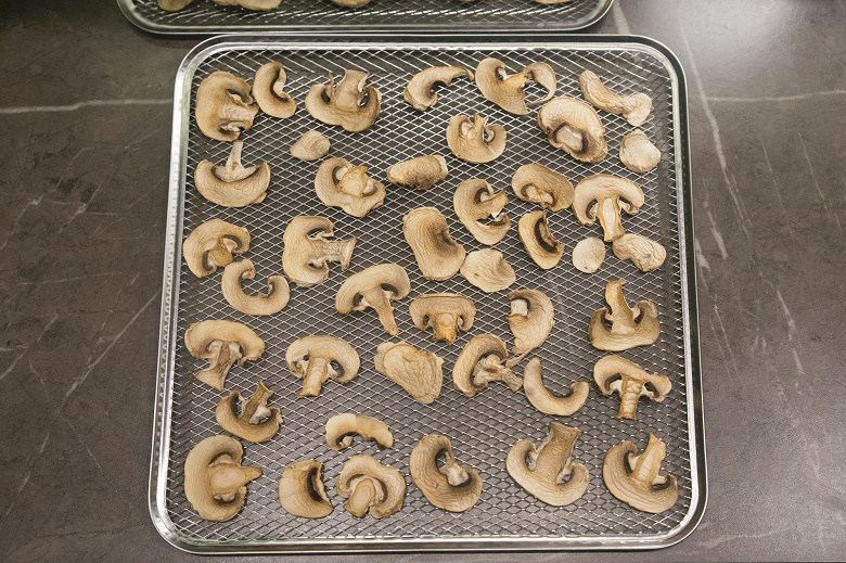 Повышаем температуру и переходим к грибам и цитрусовым. В авторежимах нашего дегидратора оба продукта предлагается сушить при 75 °C, но эта температура скорее подходит более влажным лесным грибам, а не обычным магазинным шампиньонам, как в нашем случае, да и лимоны при таком сильном нагреве могут потемнеть, так что цифру мы выбрали поскромнее — 55 °C.