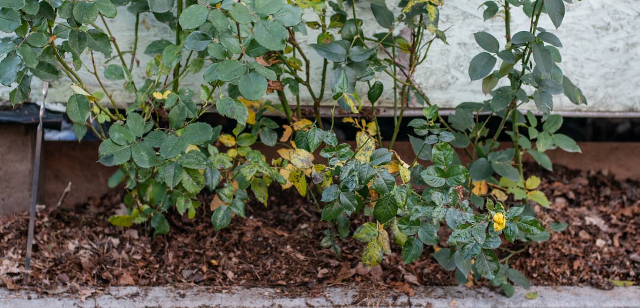 Мы утеплили полученной после переработки дубовых листьев мульчой кусты роз.