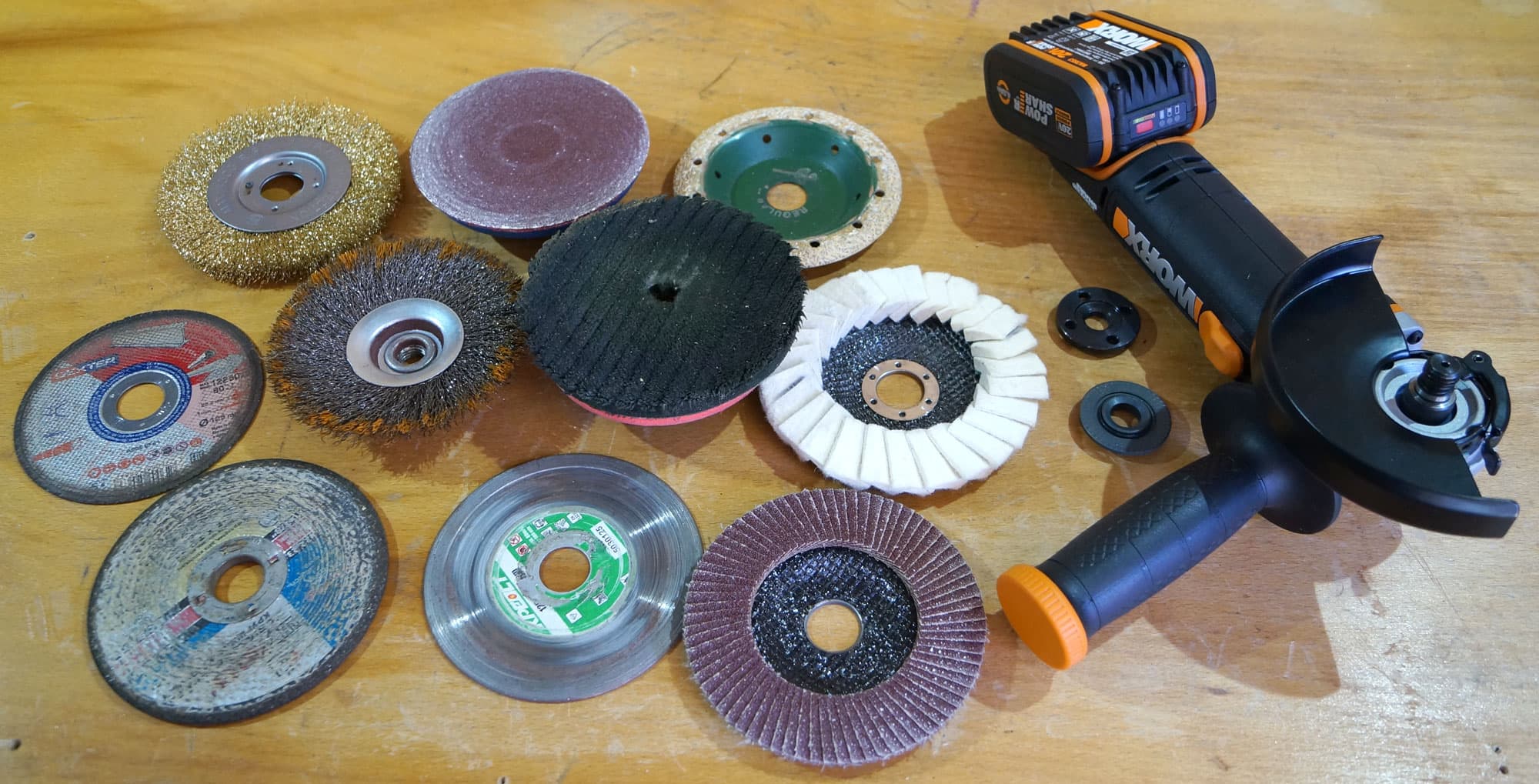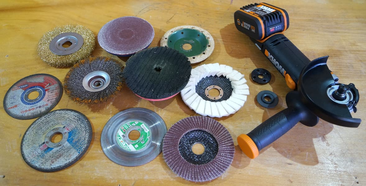 Для тестирования УШМ были приготовлены насадки разного назначения, по дереву, металлу и бетону.