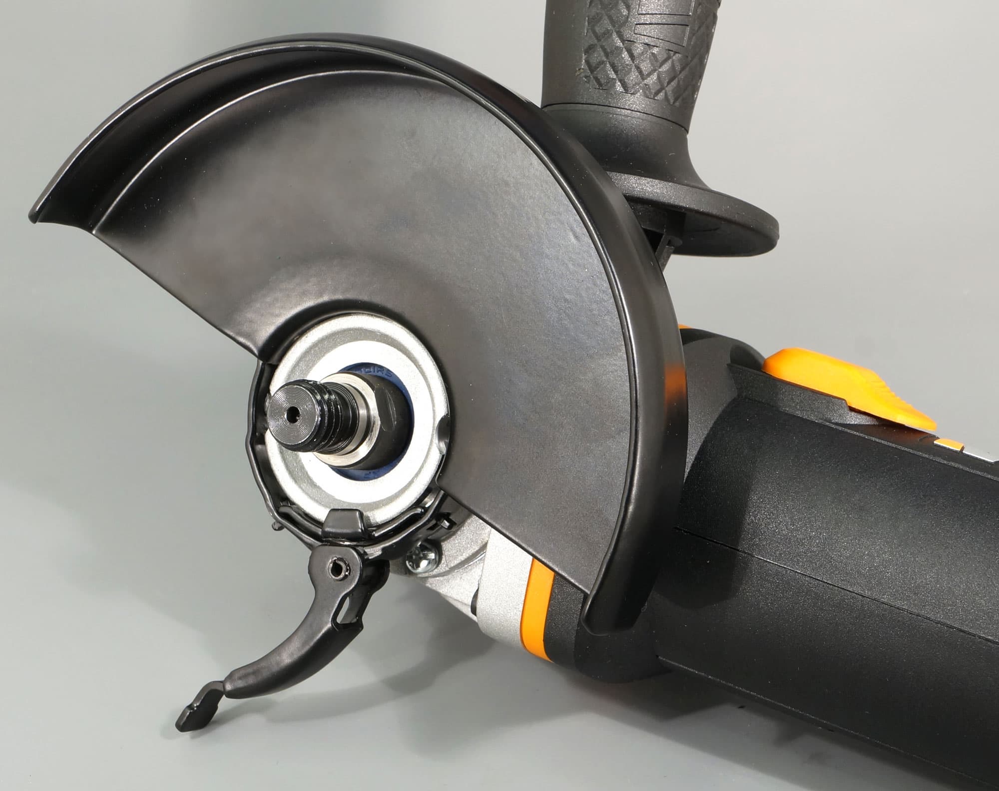 Для того, чтобы изменить положение защитного кожуха, ключ не нужен. Кожух легко надевается на посадочное место, поворачивается на нужный угол и фиксируется прижимным рычагом.