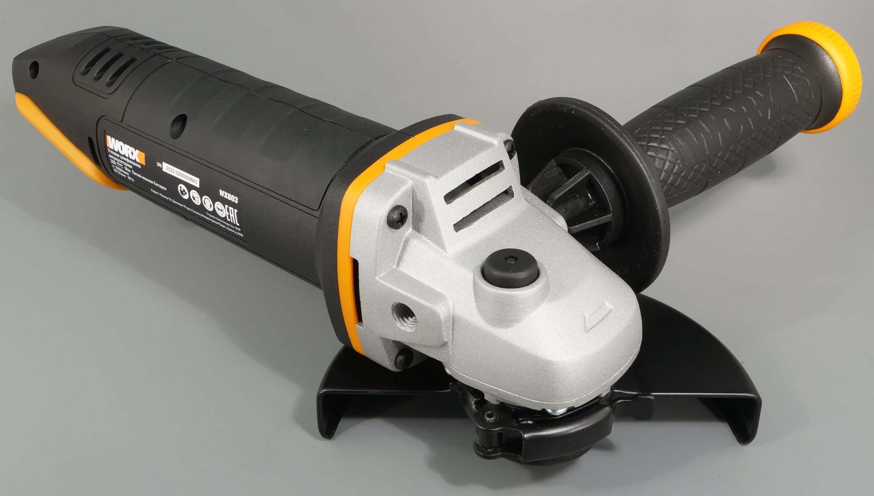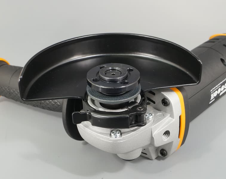 Worx WX803 — эффективный инструмент для быстрой и удобной обработки любых материалов и поверхностей при отсутствии питания от электросети. Болгарка хороша относительной компактностью и небольшим весом. Защита от повторного пуска при смене аккумулятора, бесключевой монтаж защитного кожуха, тормоз двигателя — налицо признаки небюджетной модели.