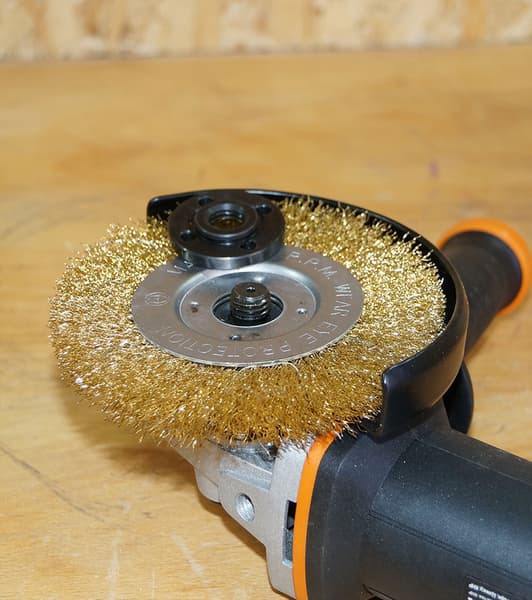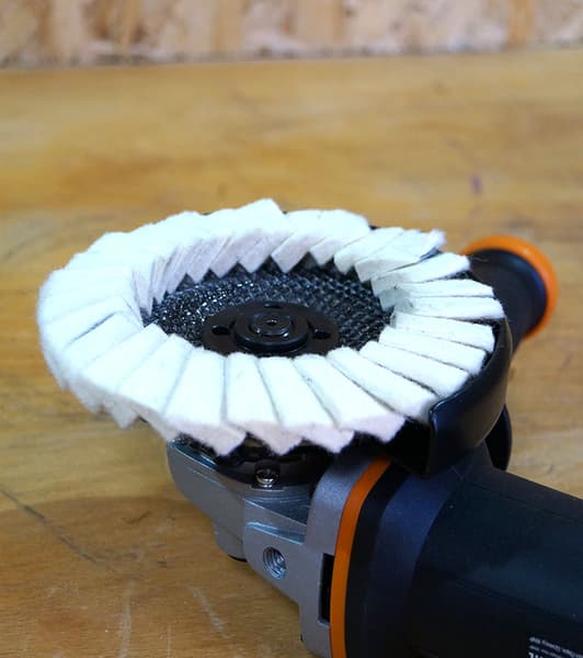 В исключения попали две крупные насадки с элементами, выходящими за диаметр кожуха. Войлочные лепестки первой насадки слишком плотно прижались к внутренней стороне кожуха: эксплуатировать насадку в таком виде нельзя, она будет подгорать (запах паленой шерсти и прочие «прелести»). Вторая насадка, с металлическими проволоками, вообще не пожелала устраиваться на шпинделе. А поскольку такую насадку использовать без защиты воспрещается, то о ней лучше забыть.