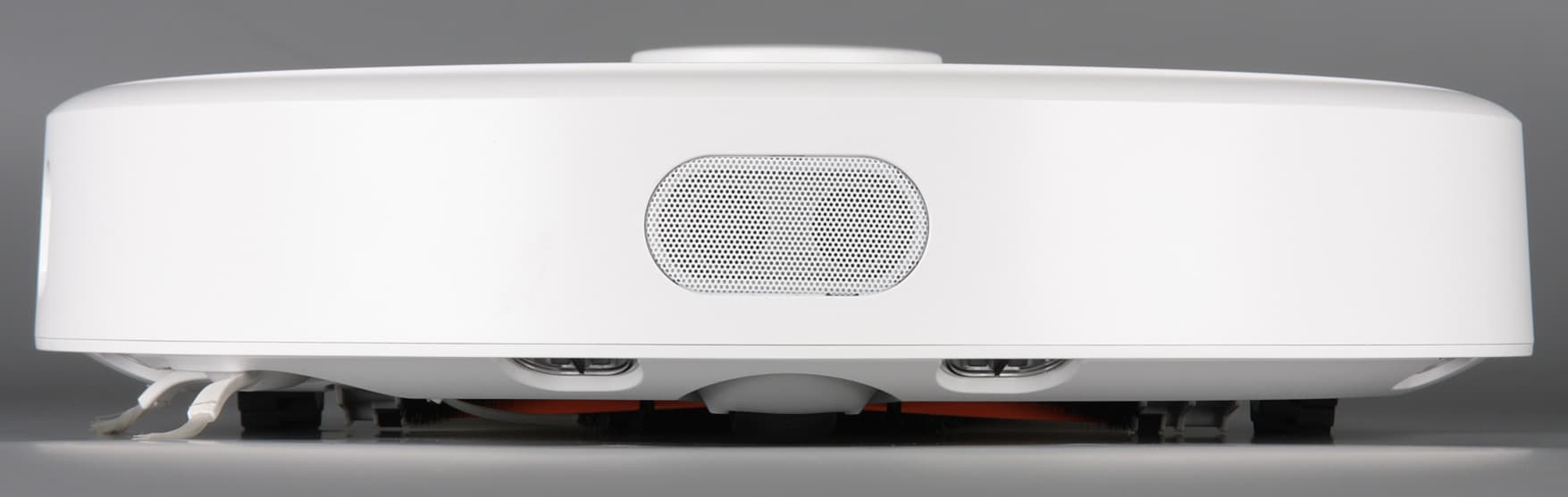 За решеткой по центру бампера находится ультразвуковой датчик приближения к препятствию. На правом боку бампера есть овальный вырез, за которым расположен вспомогательный ИК-датчик препятствий, помогающий роботу двигаться вплотную к препятствию (заявлено, что на расстоянии 10 мм), по возможности без физического контакта с ним.