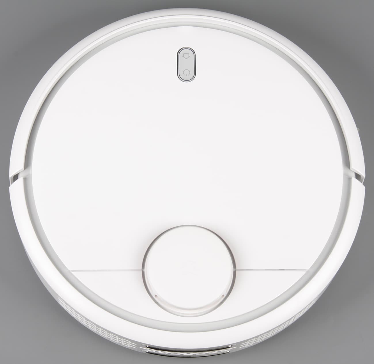 Корпус изготовлен из белого пластика с матовой поверхностью без покрытия. С одной стороны это хорошо, так как светлый робот заметен в темноте и на темном полу, поэтому его проще находить, например, под диваном, когда он там застрянет, и на робота с меньшей вероятностью будут случайно наступать, с другой — белое матовое днище легко пачкается и сложно очищается. Верхняя поверхность крышки, закрывающей большую часть верхней панели, тоже белая, но зеркально-гладкая. В передней части располагается контрольная панель с механической кнопкой-качалкой, ободок которой подсвечивается белым, оранжевым или красным, статично или с определенной динамикой в зависимости от текущего состояния, синим индикатором состояния подключения по Wi-Fi и крохотной кнопкой сброса. Когда верхняя крышка закрыта, то доступной остается только кнопка-качалка.