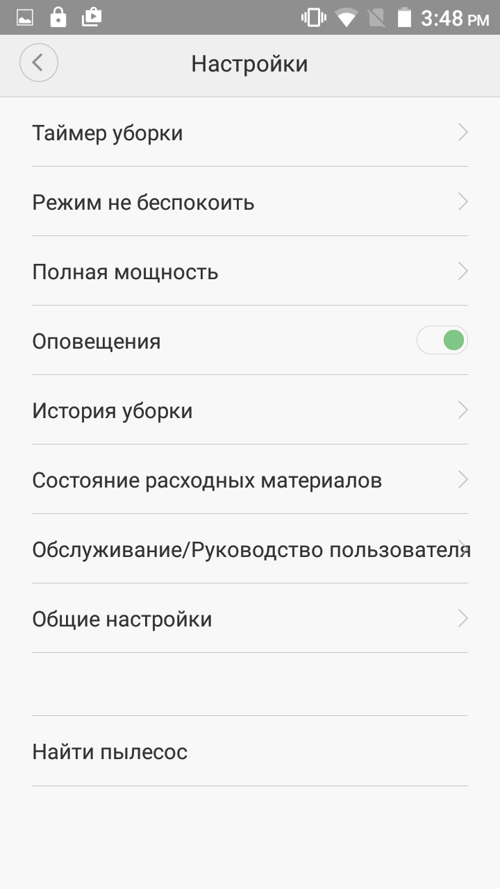 Данная опция, как и многие другие функции доступны из фирменного приложения, устанавливаемого на мобильные устройства с Android (видимо, и iOS) на борту. Официальной русской версии приложения нет, но при желании можно найти и поставить из APK-файла неофициальную переведенную на русский язык версию (правда, придется еще немного повозиться для того, чтобы также установить переведенный на русский плагин, предназначенный для управления роботом-пылесосом). Большинство снимков с экрана, приведенных тут, сделаны именно для такой русифицированной версии приложения и плагина.