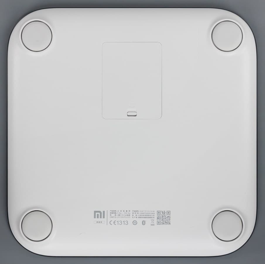 В непримечательной картонной коробке с маленьким логотипом «mi» мы обнаружили сами весы, комплект из четырех AA-батареек и буклет-инструкцию на китайском.